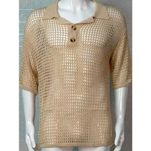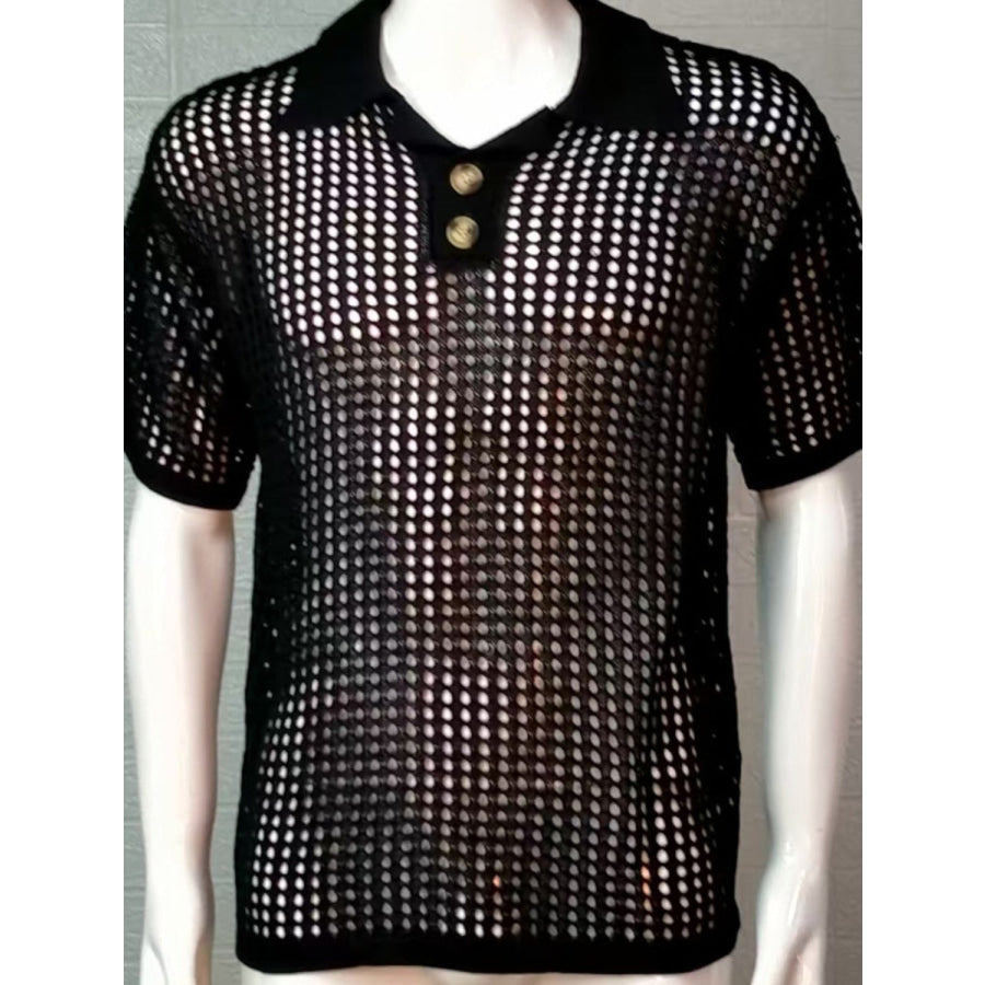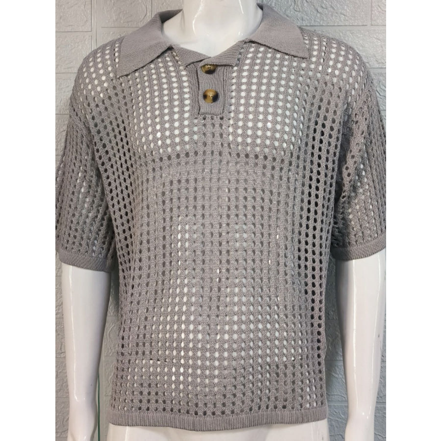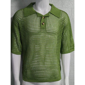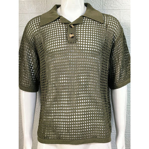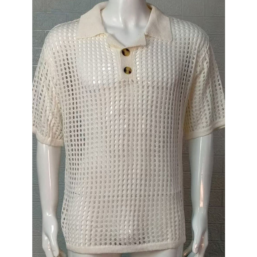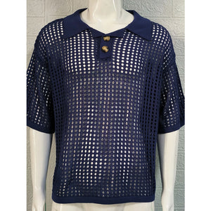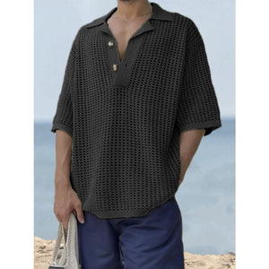 Men's Plus Size Openwork Collared Neck Quarter Button Knit Polo