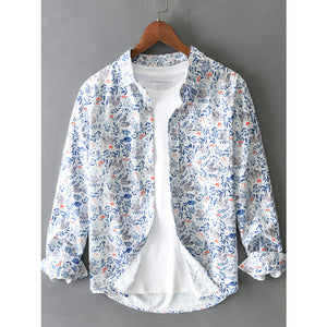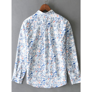 Men's Plus Size Printed Button Up Long Sleeve Shirt