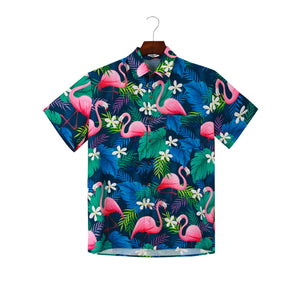 Men's Plus Size Printed Button Up Short Sleeve Shirt
