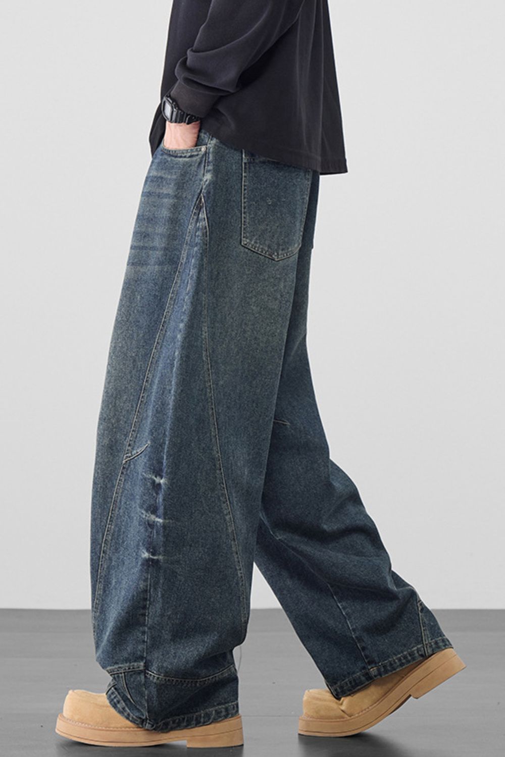 Men's Plus Size Vintage Washed Wide Leg Jeans