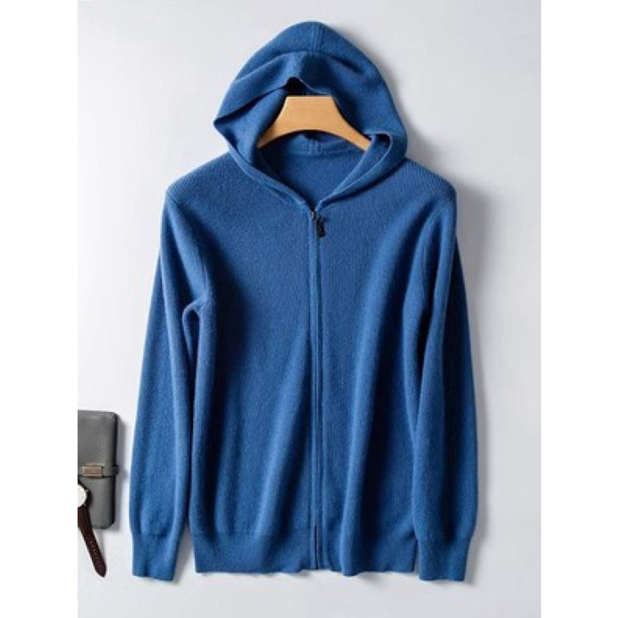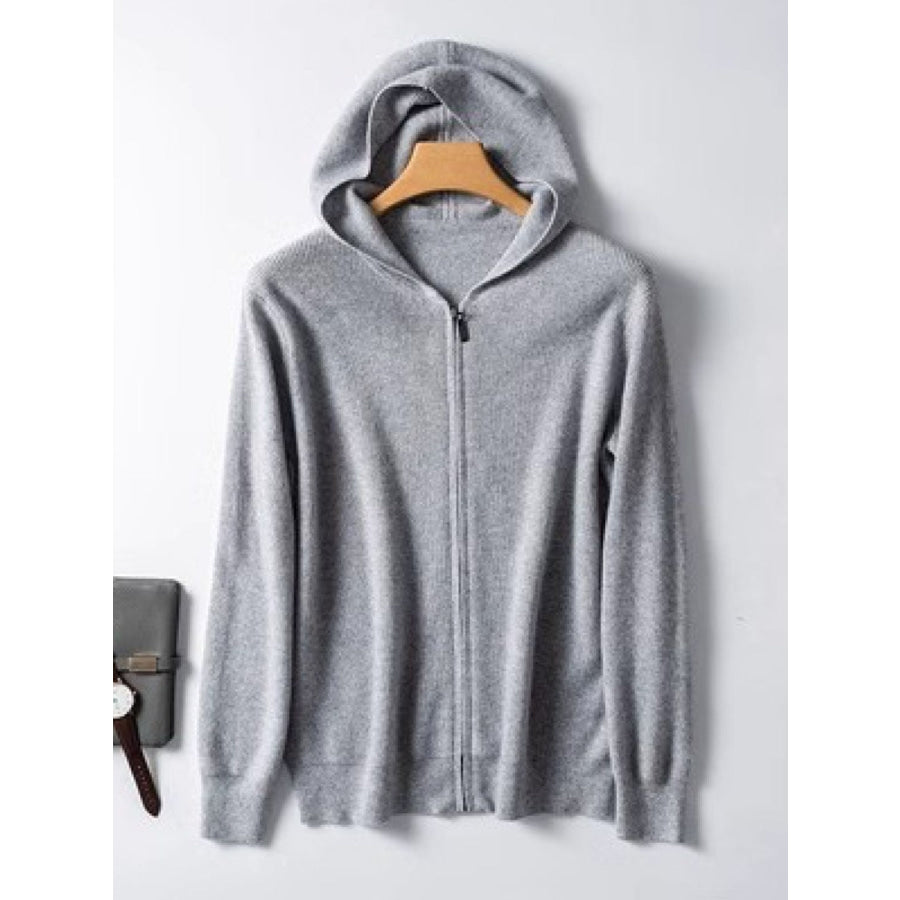 Men's Plus Size Zip Up Long Sleeve Hooded Cardigan