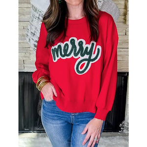 Merry Script Holiday Christmas Graphic Sweatshirt