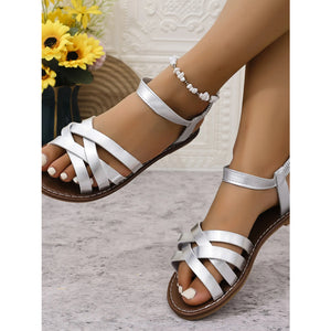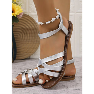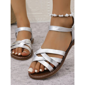Metallic Cross-Strap Flat Sandals with Ankle Strap