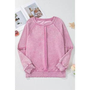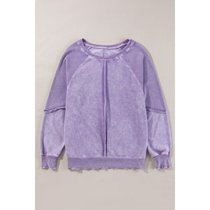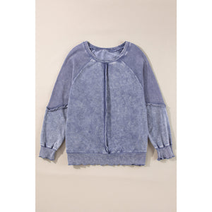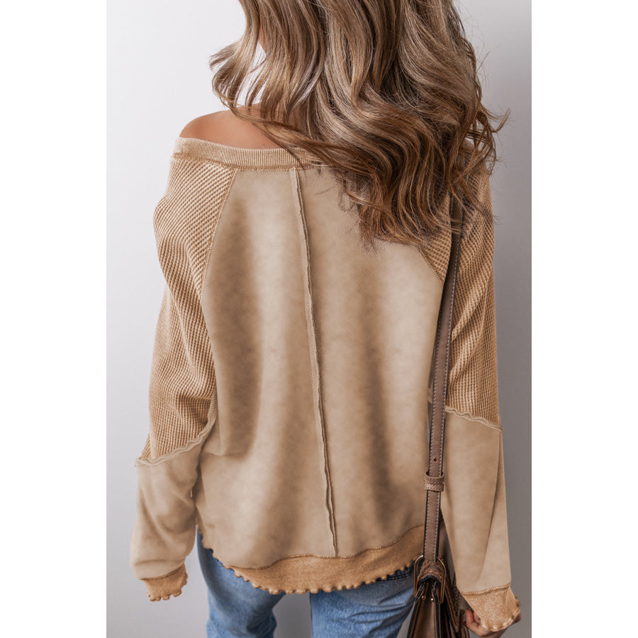 Mineral Blue Solid Waffle Knit Patchwork Raglan Sleeve Sweatshirt