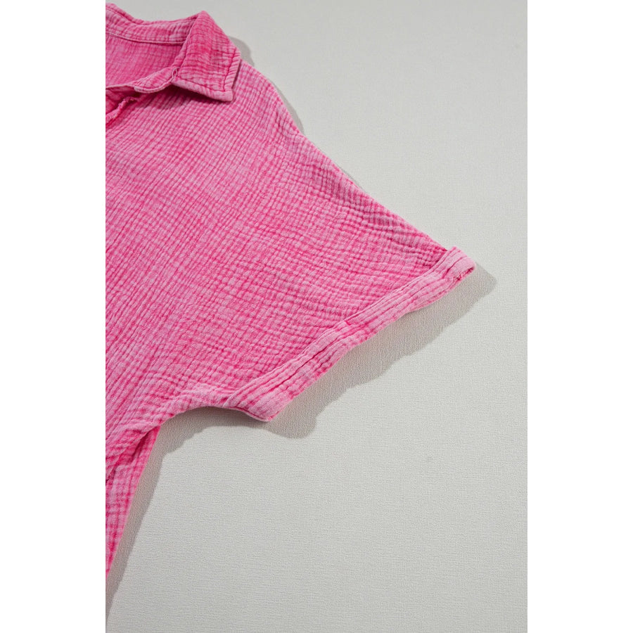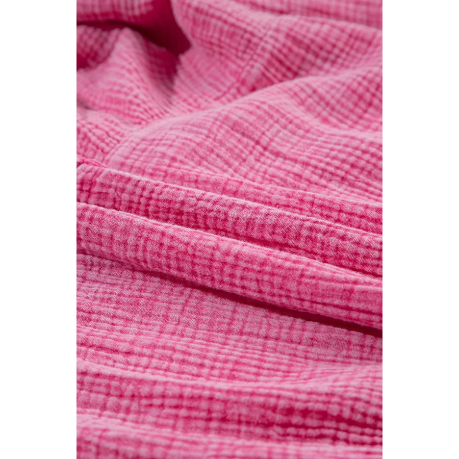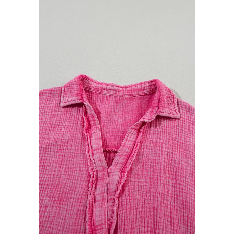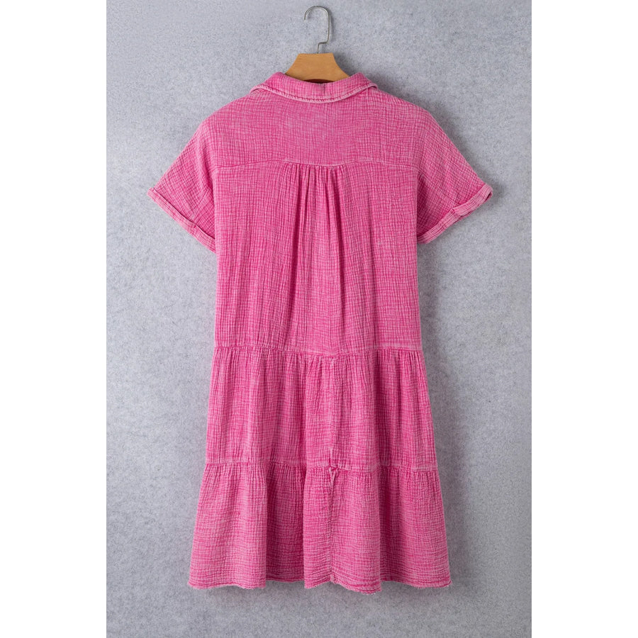 Mineral Wash Crinkle Split Neck Raw Hem Tiered Dress
