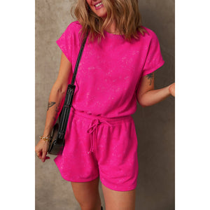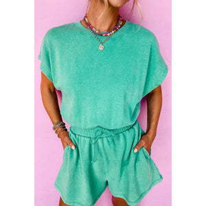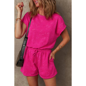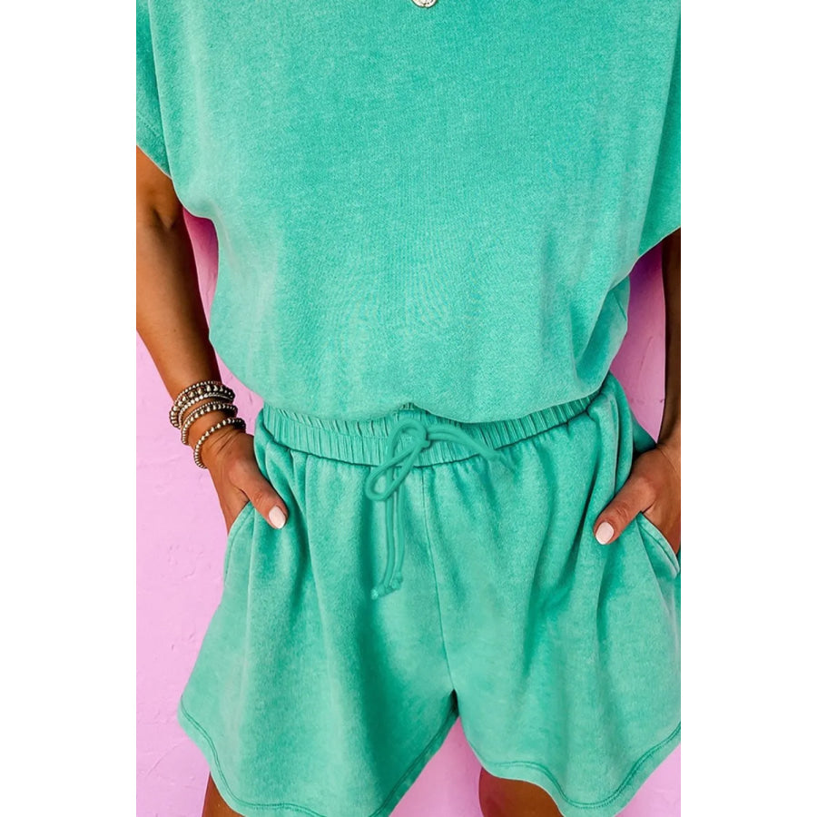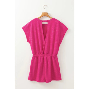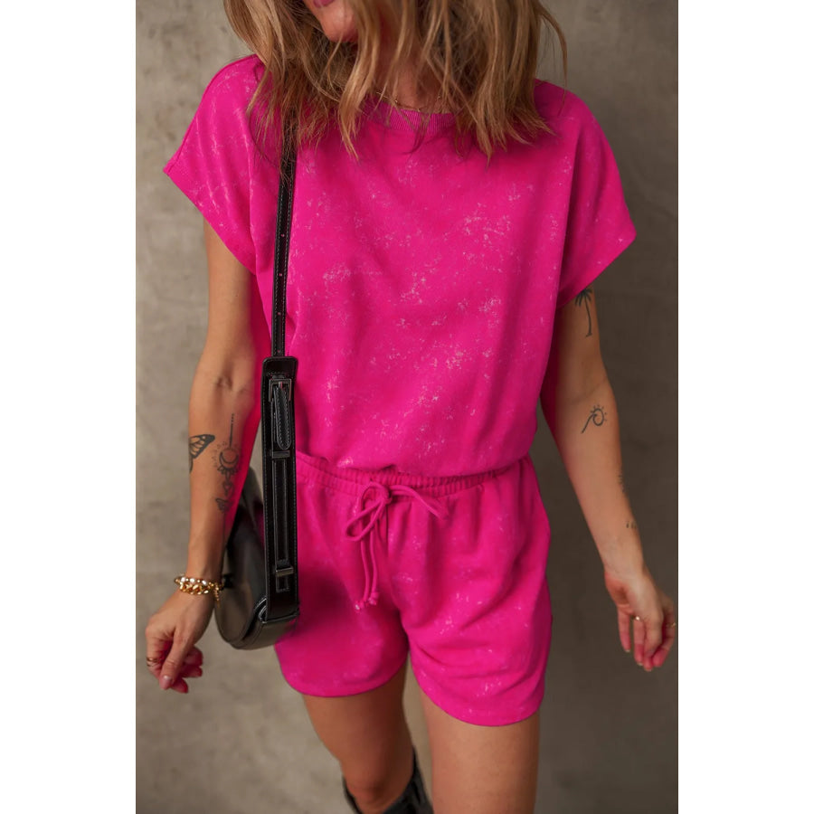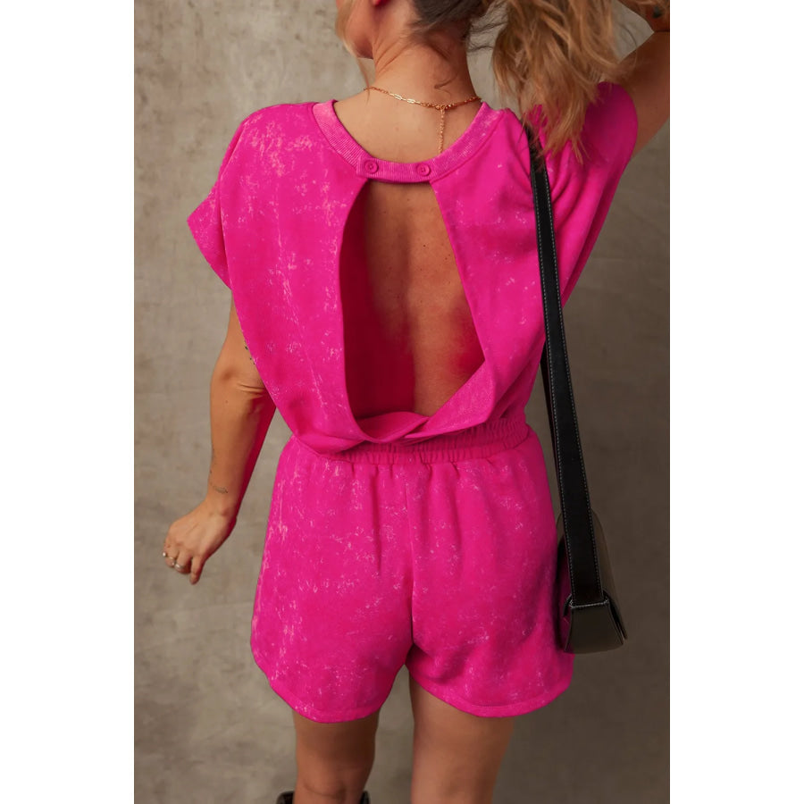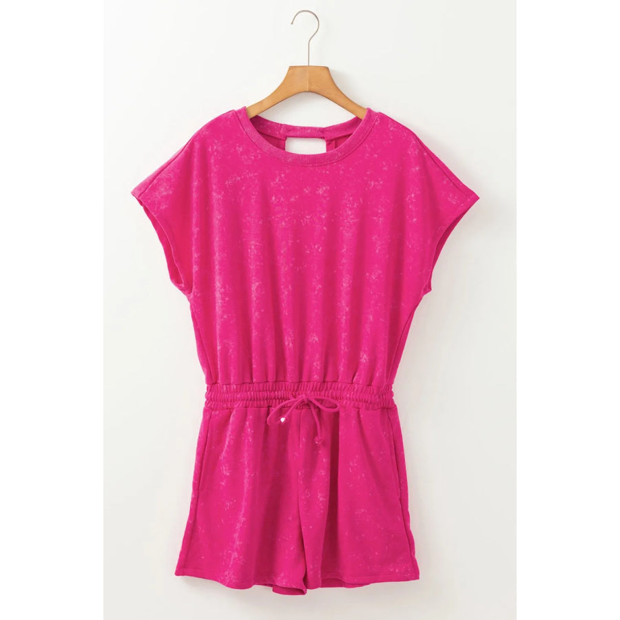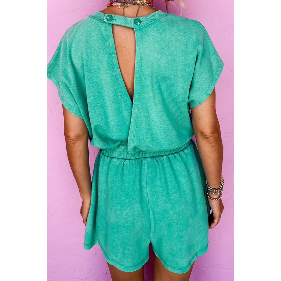 Mineral Wash Hollow Out Back Drawstring Waist Romper