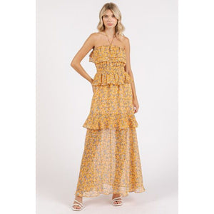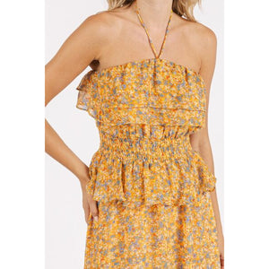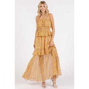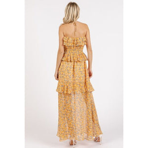 Mittoshop Ruffled Smocked Floral Halter Neck Maxi Dress