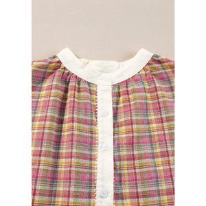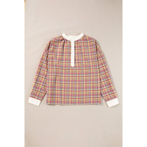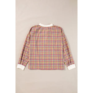 Mulit-Color Plaid Round Neck Long Sleeve Blouse