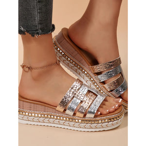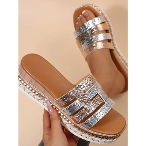 Multi-Strap Metallic Slide Sandals