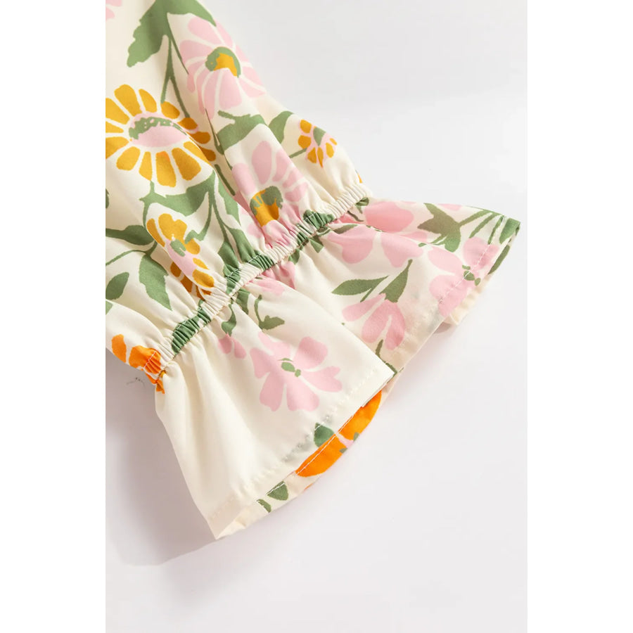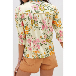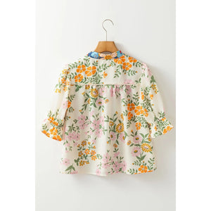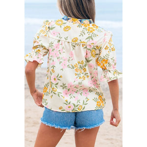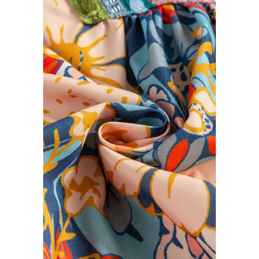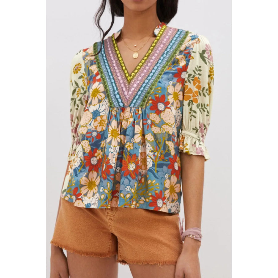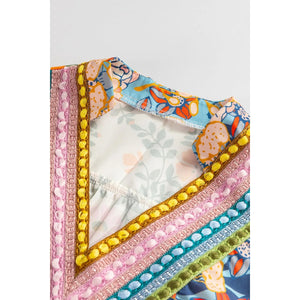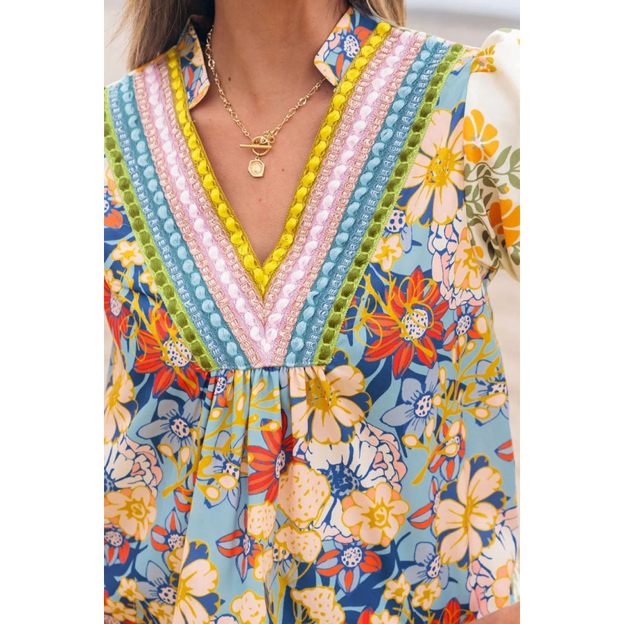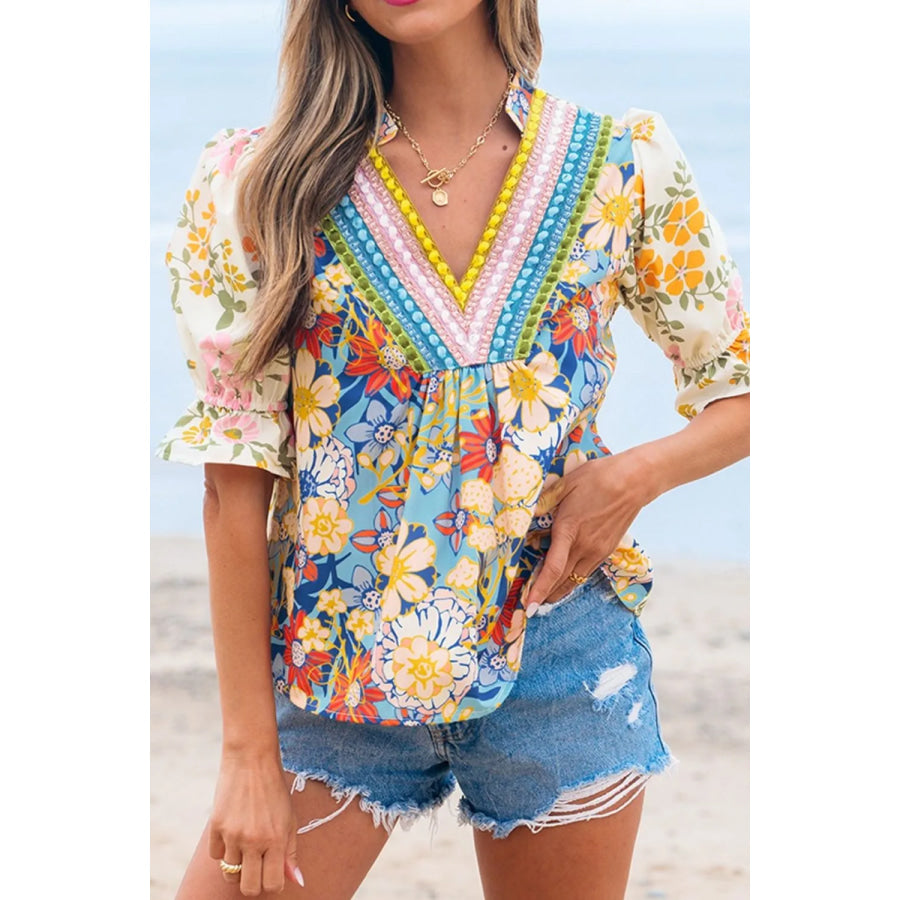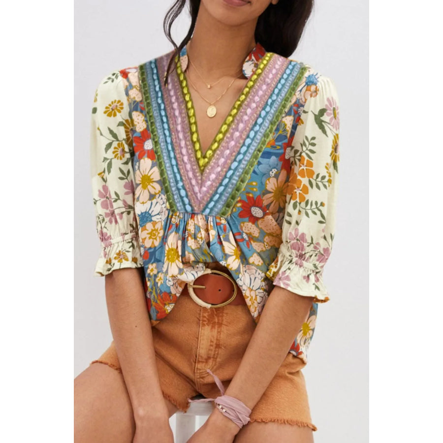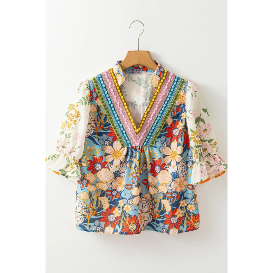 Multicolour Crochet V Neck Half Sleeve Boho Floral Blouse