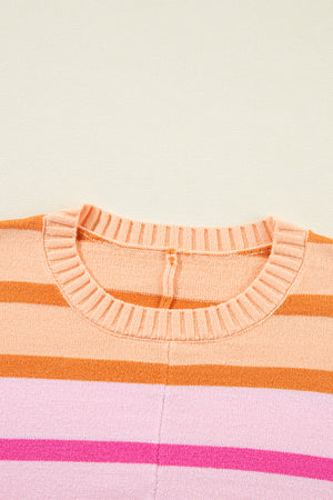 Multicolour Gradient Striped Ribbed Edge Loose Sweater