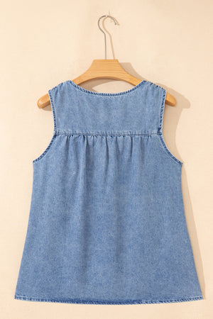 Myosotis Denim Pleated Patchwork Sleeveless Top