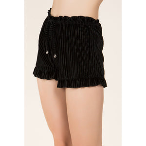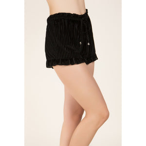 NEW! Velvet Vertical Stripe Shorts with Ruffled Hem and Drawstring