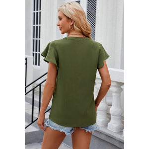 Notched Cap Sleeve T-Shirt