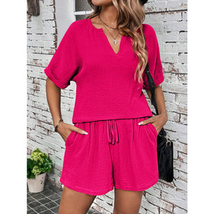Notched Half Sleeve Top and Shorts Set