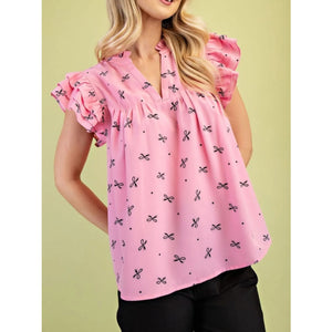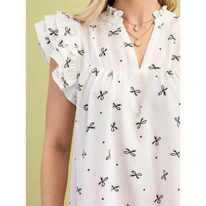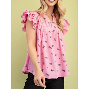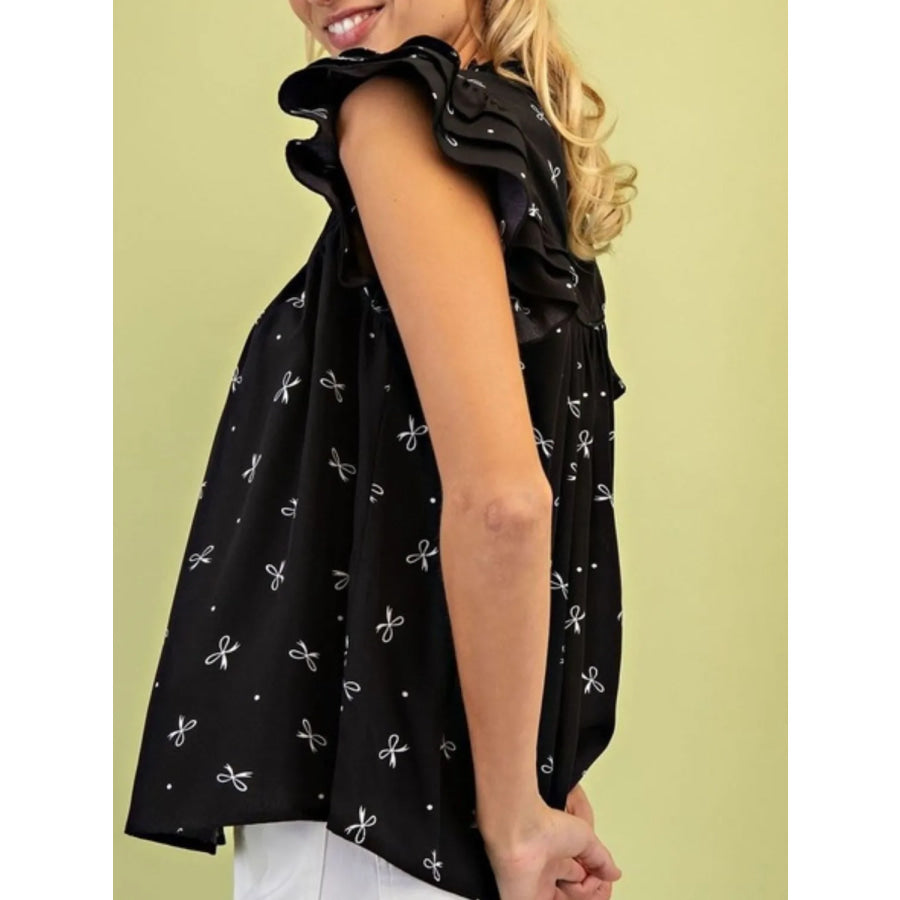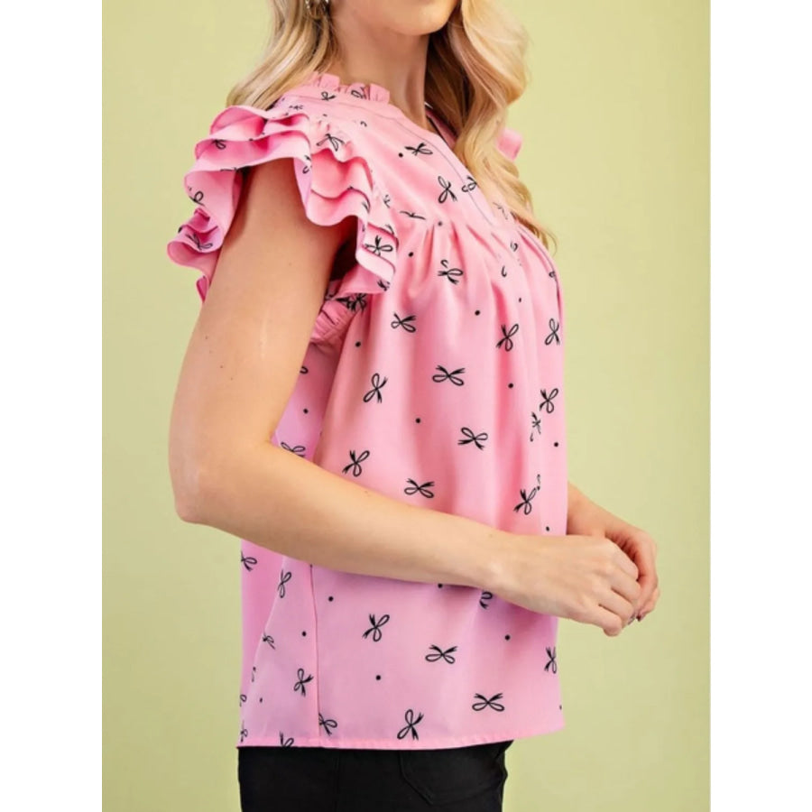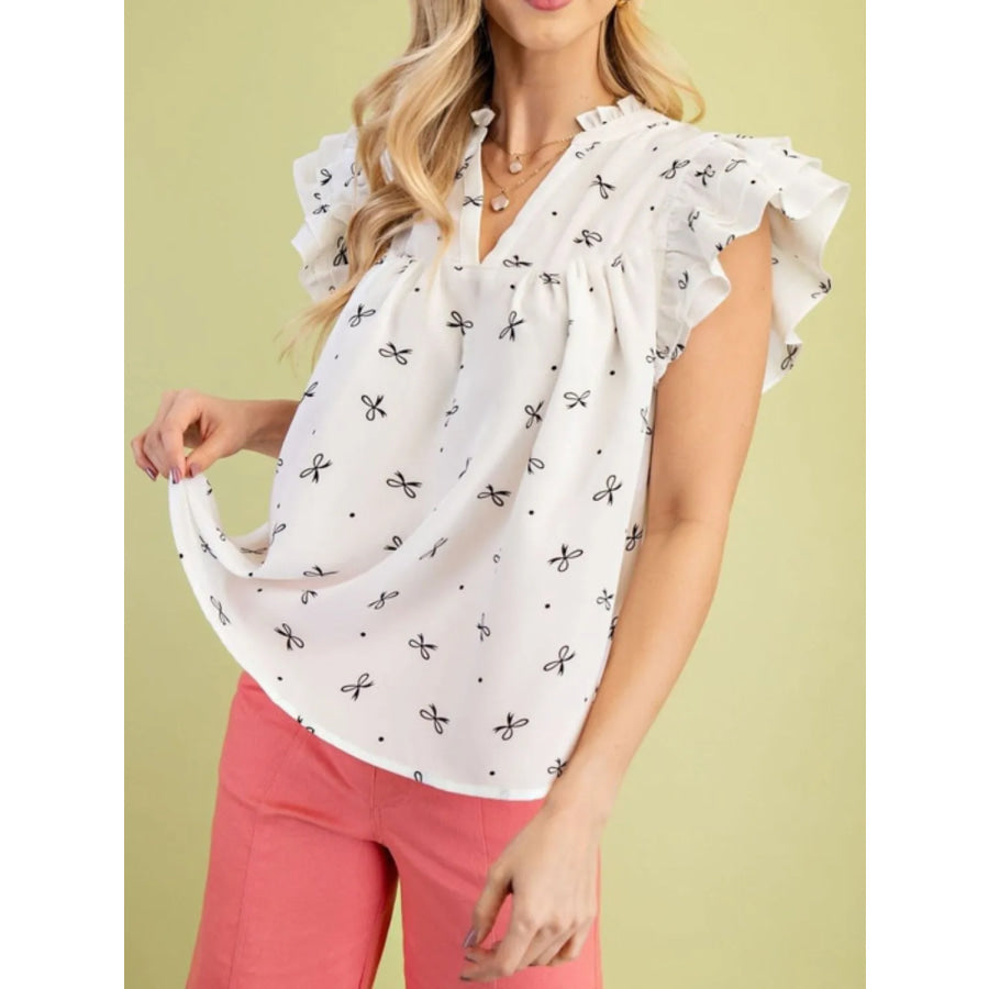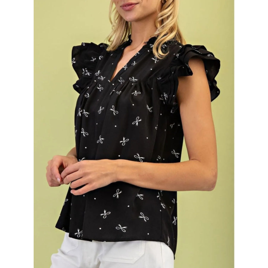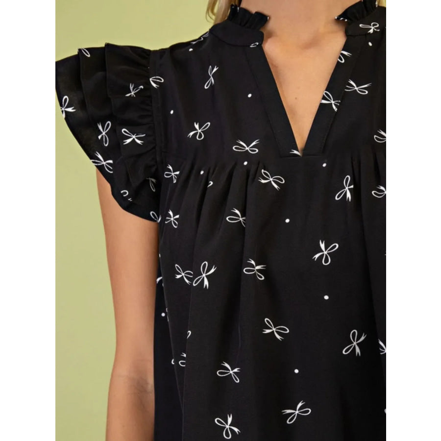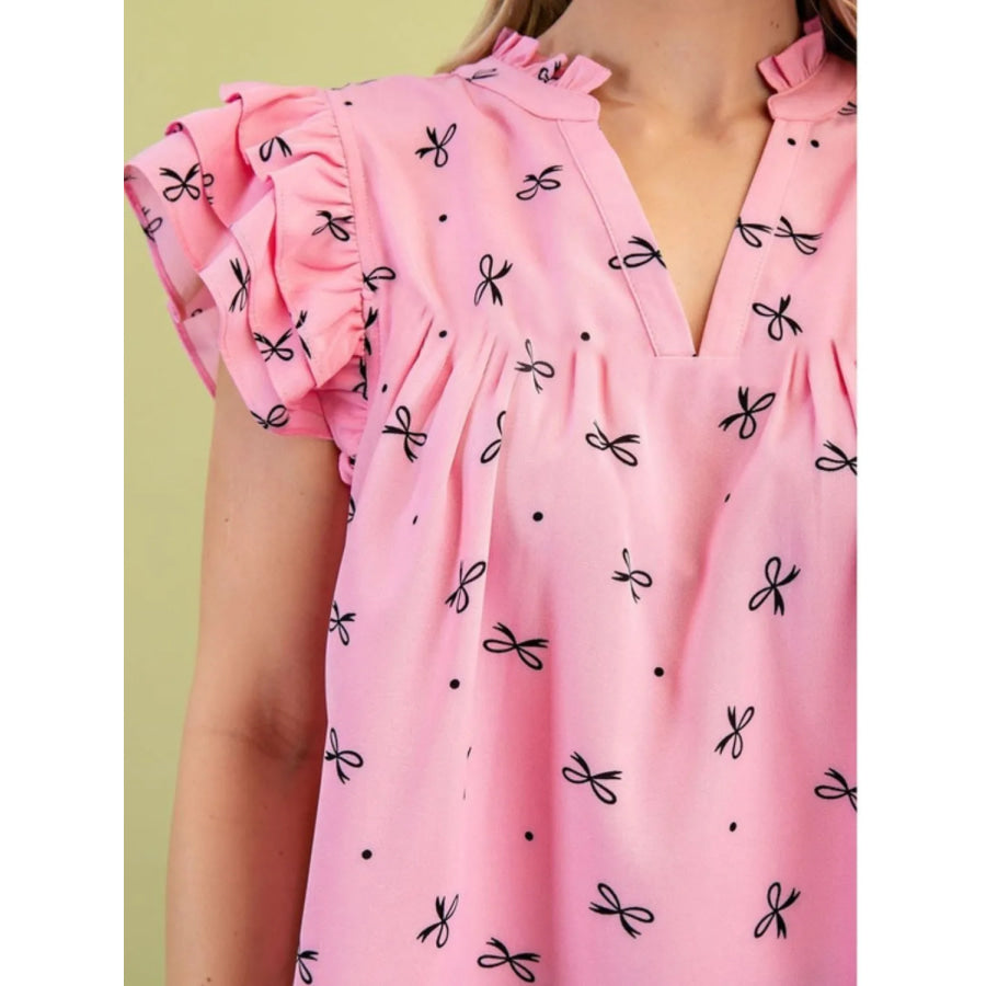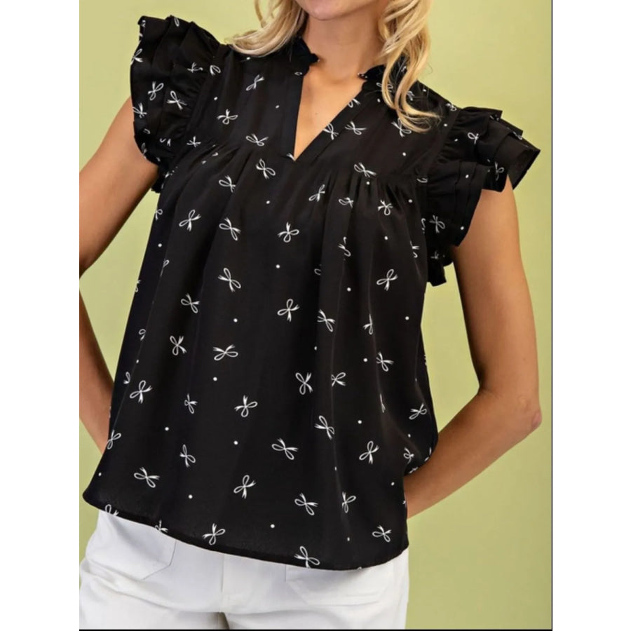 Notched Ruffled Cap Sleeve Blouse