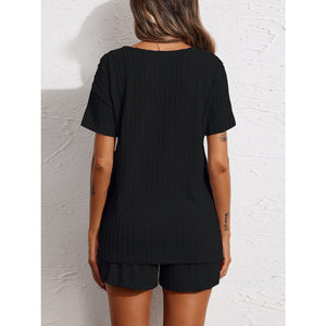 Notched Short Sleeve Top and Shorts Set