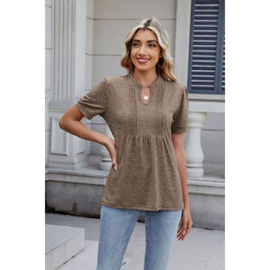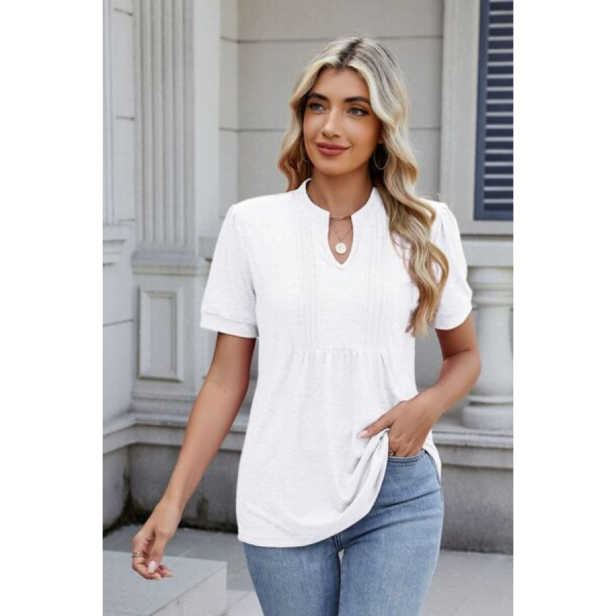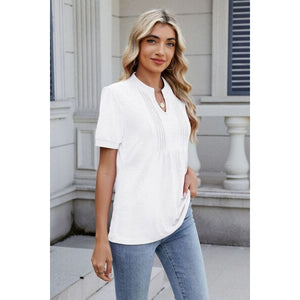 Notched Short Sleeve Top