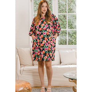 ODDI Full Size Floral Puff Sleeve Mini Dress