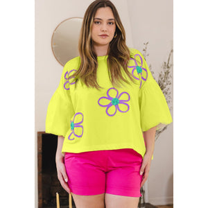 ODDI Full Size Flower Embroidery Detail T-Shirt