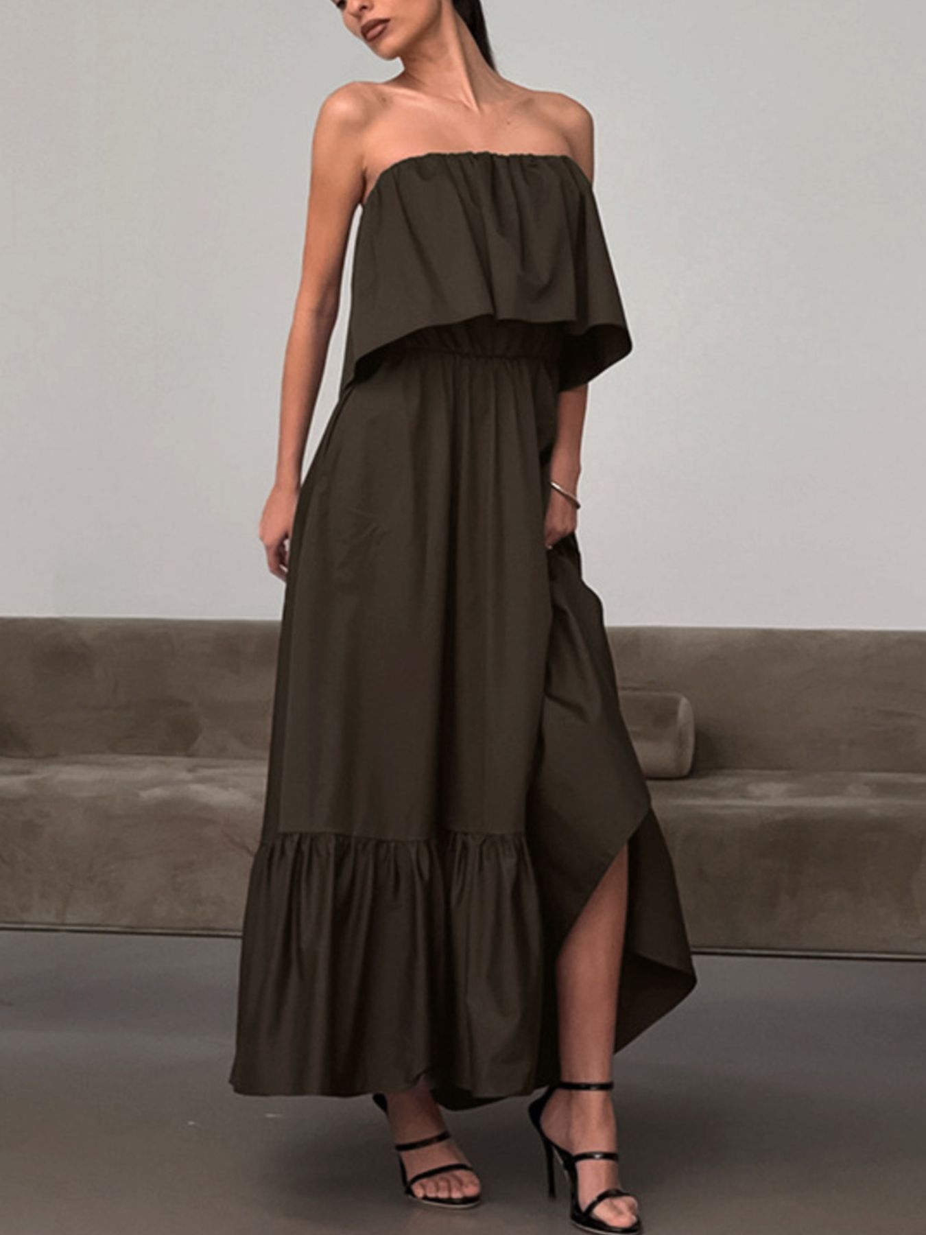 • Features:Tiered,Ruffled