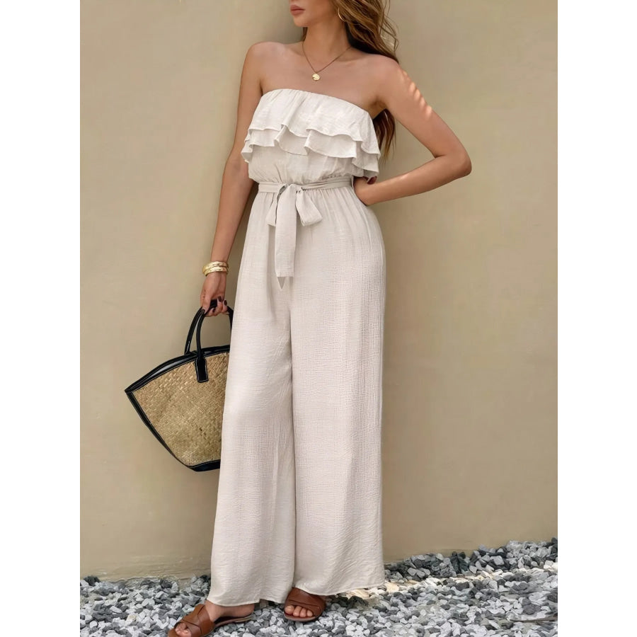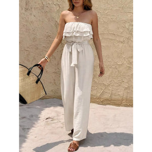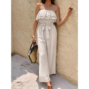 Off-Shoulder Ruffled Wide Leg Jumpsuit