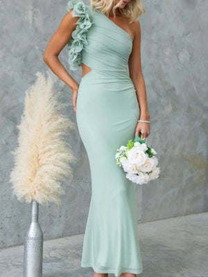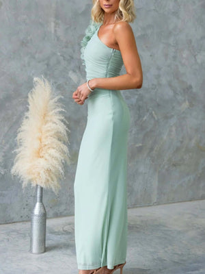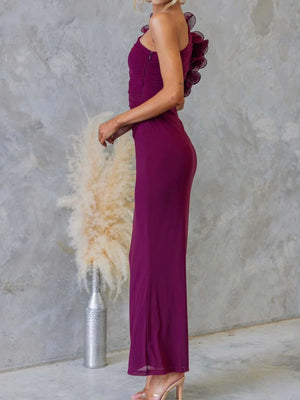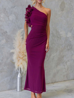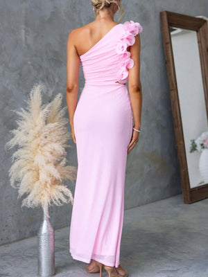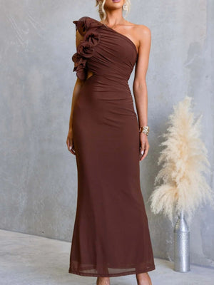 One-Shoulder Floral Trim Sleeveless Maxi Dress