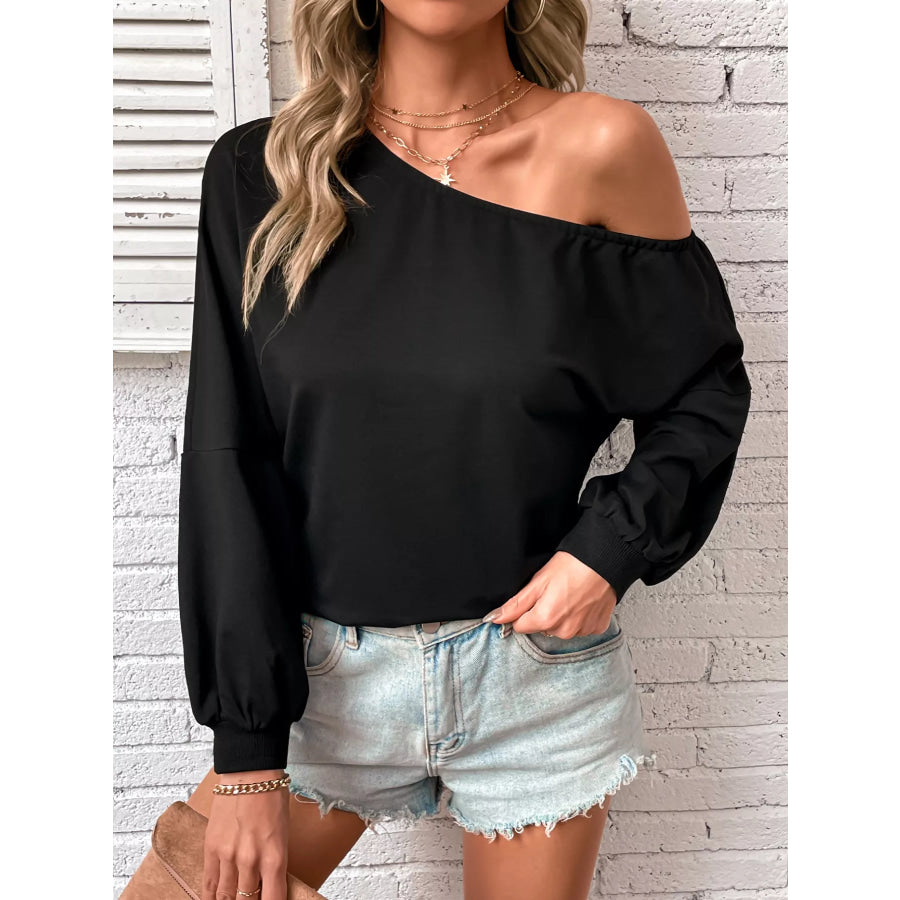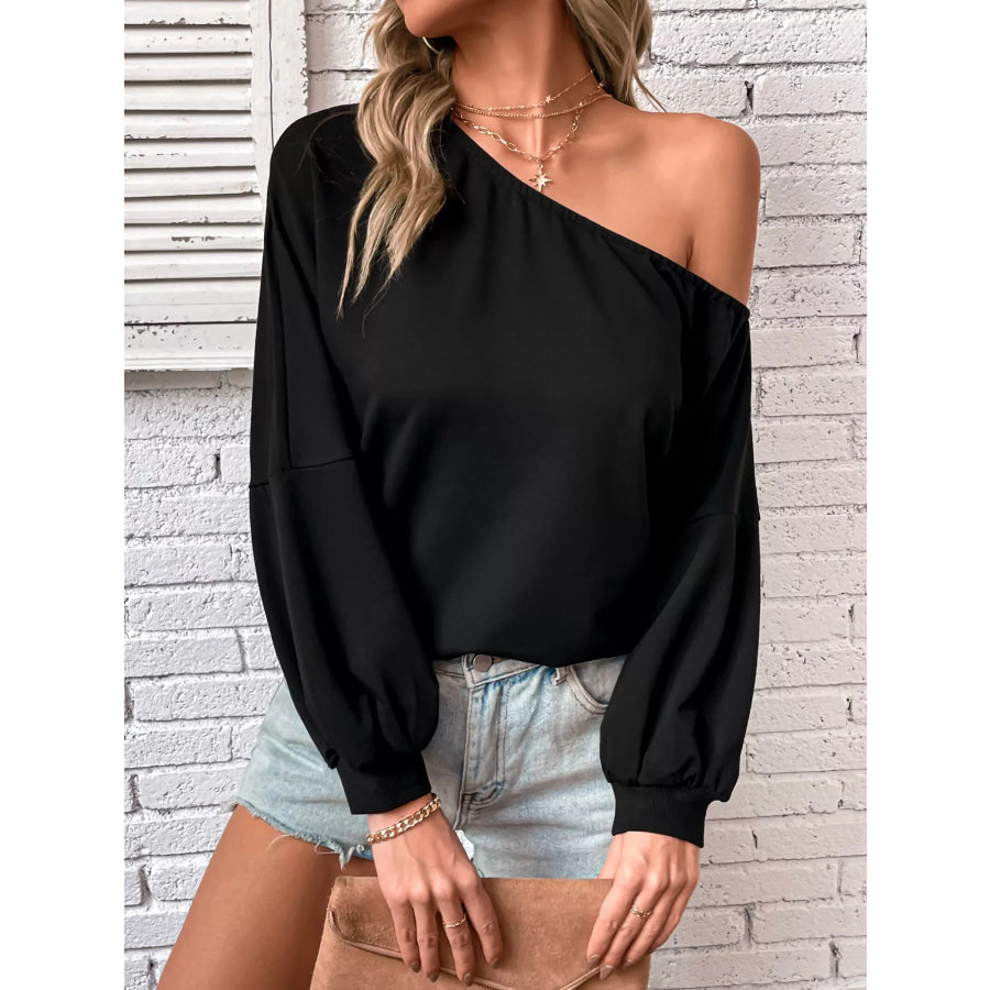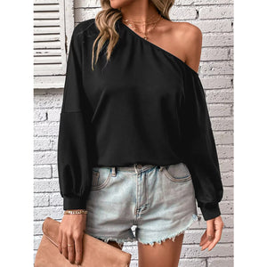 One-Shoulder Long Sleeve Casual Sweatshirt
