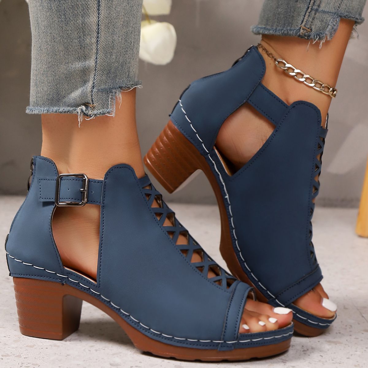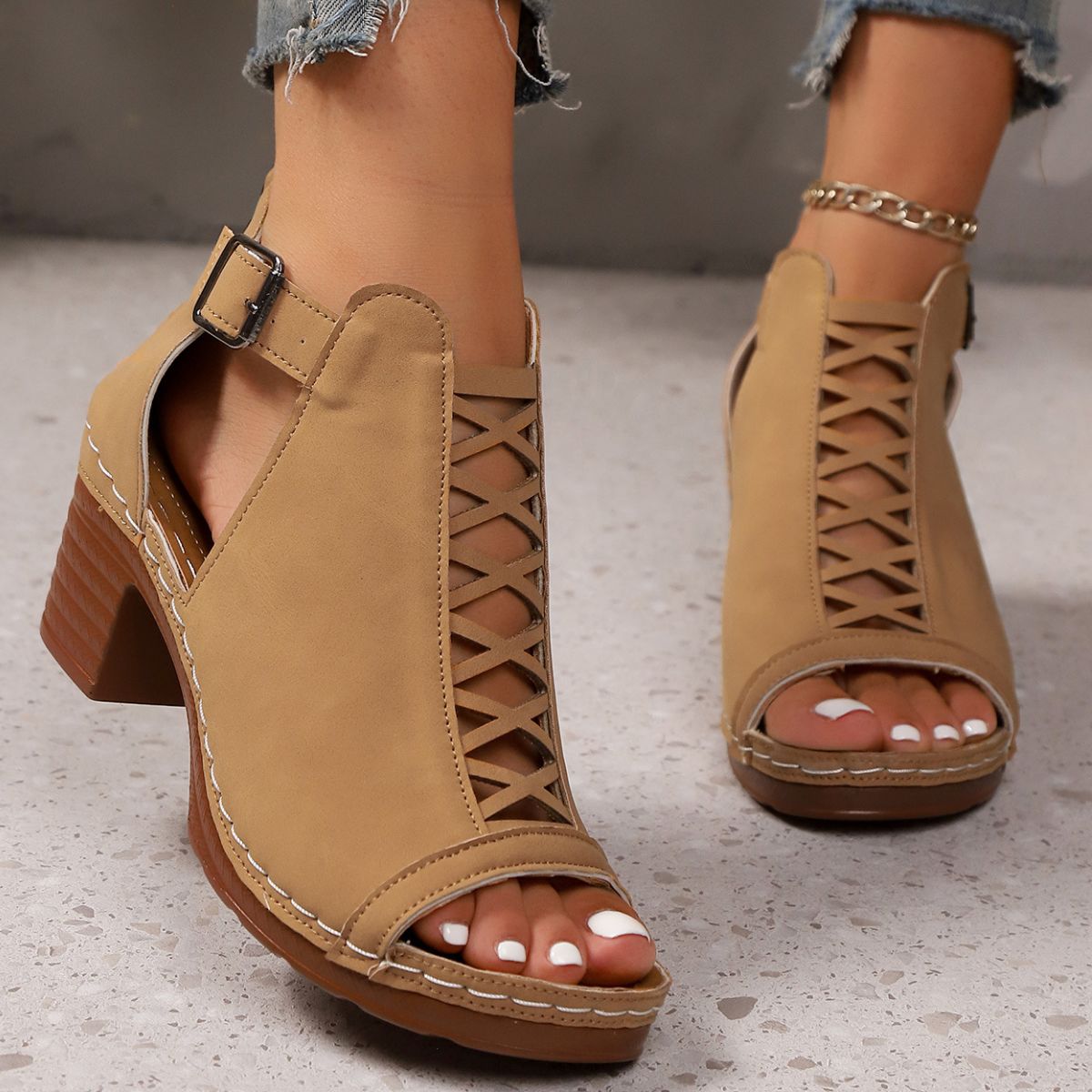 Open Toe Block Heels Sandals
