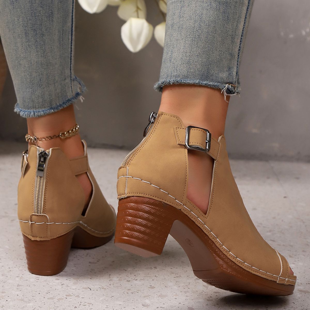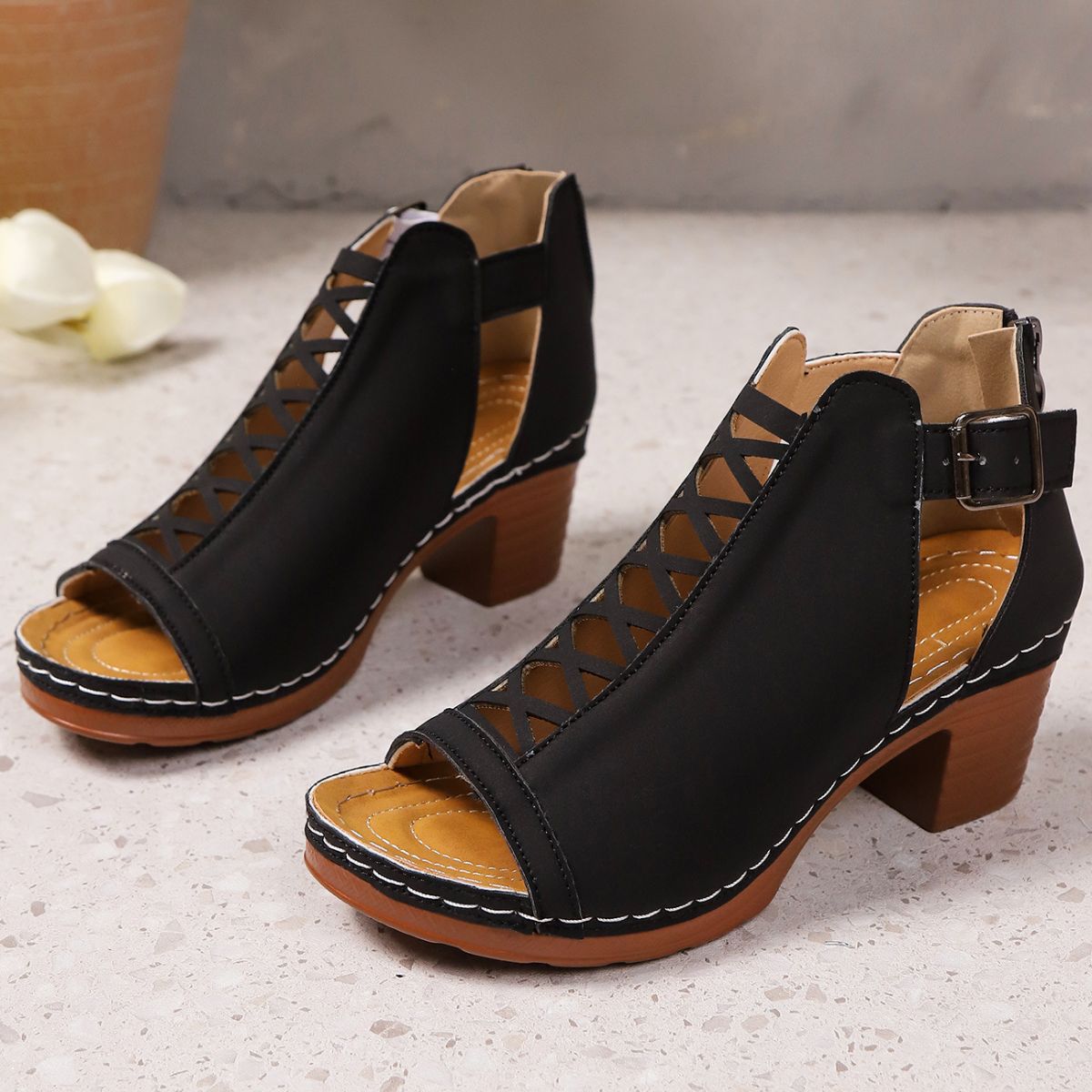 • Heel height:Mid heels