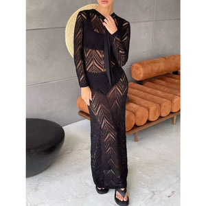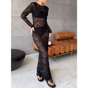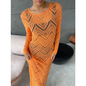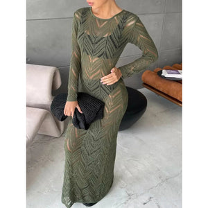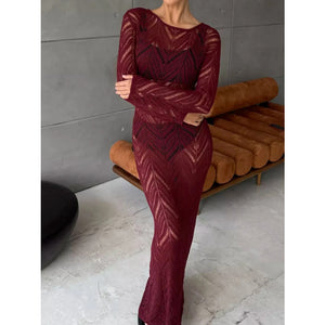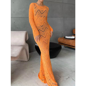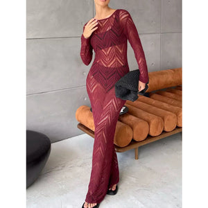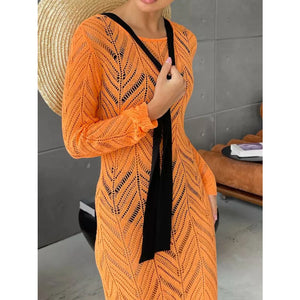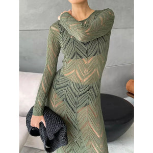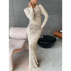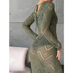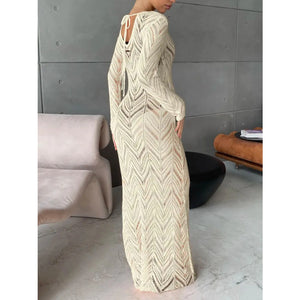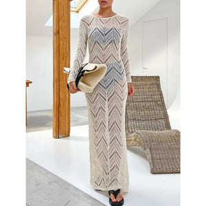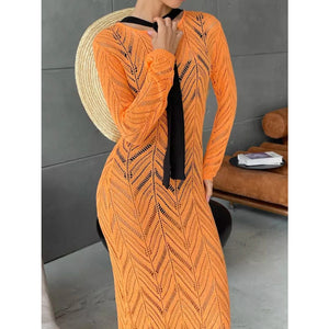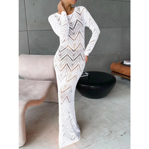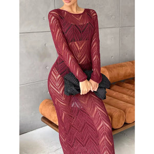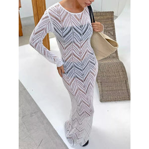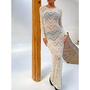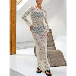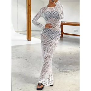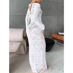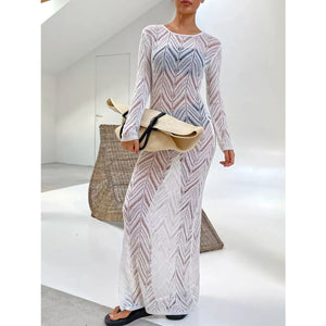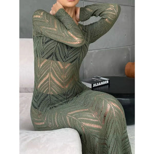 Openwork Long Sleeve Knit Cover Up Dress