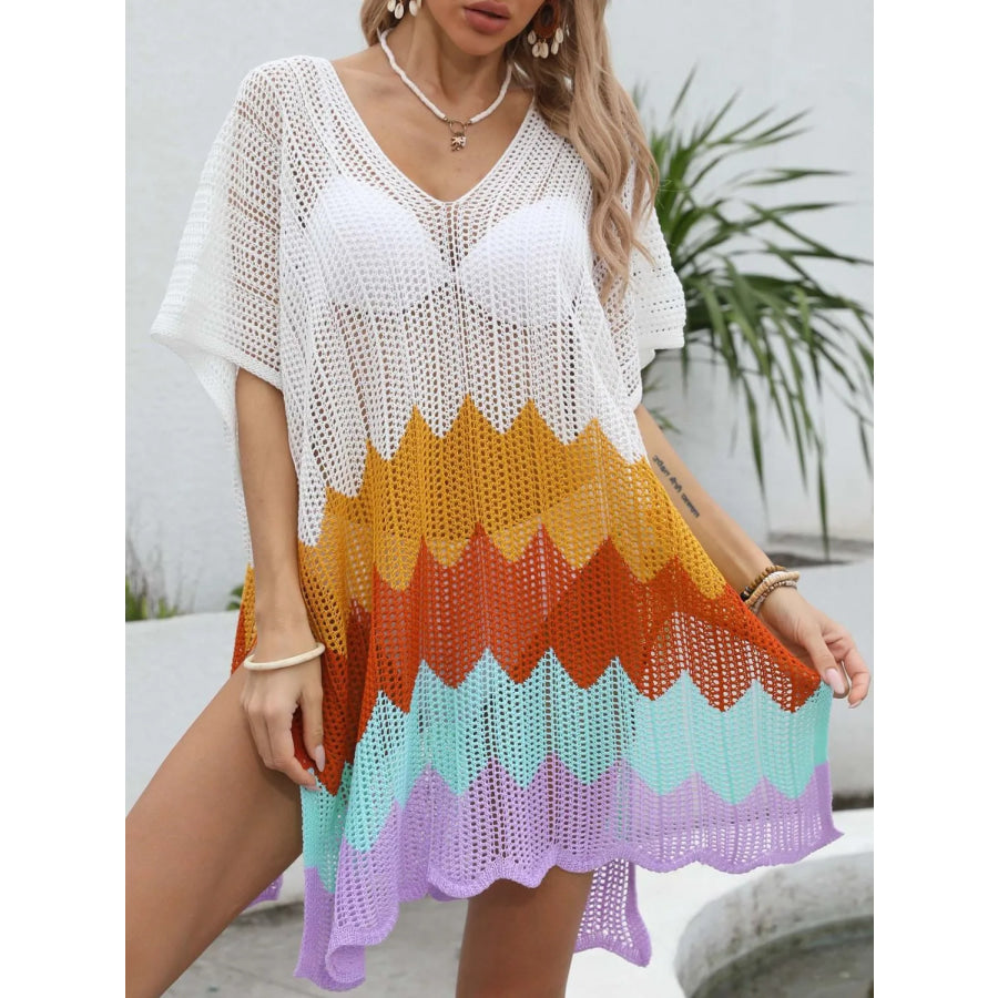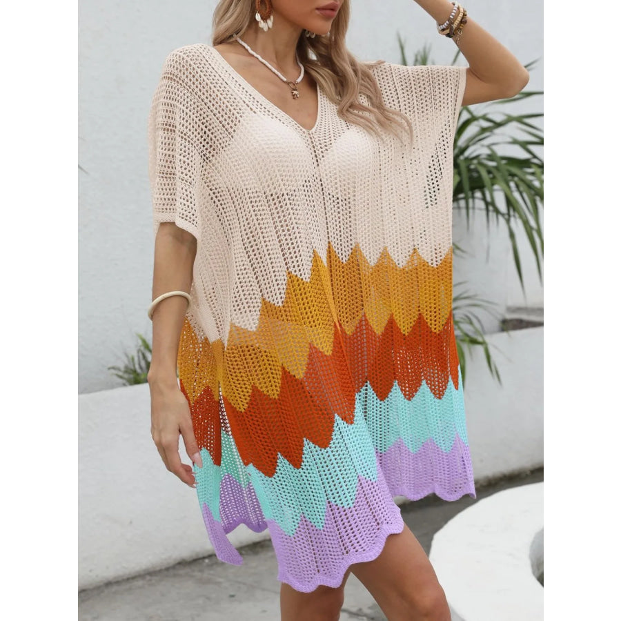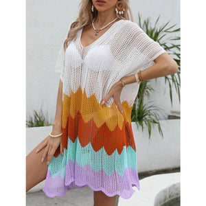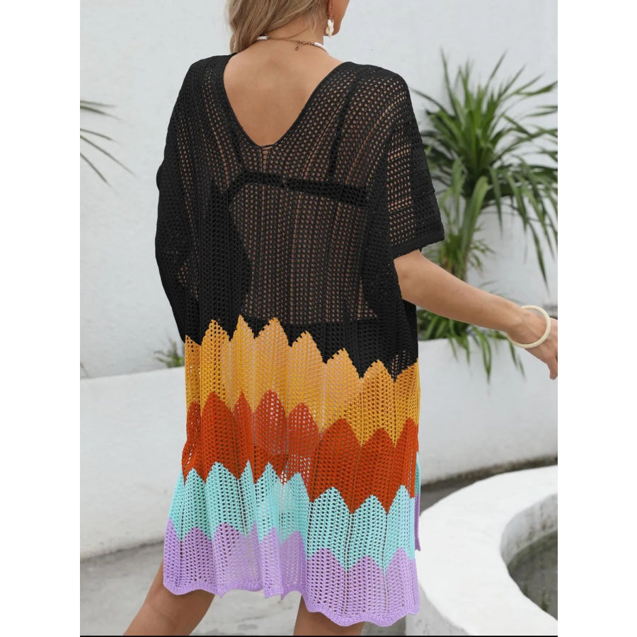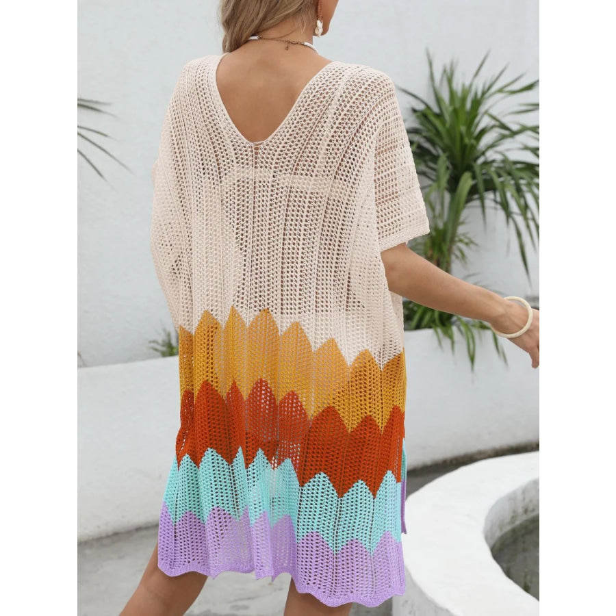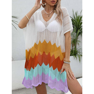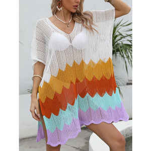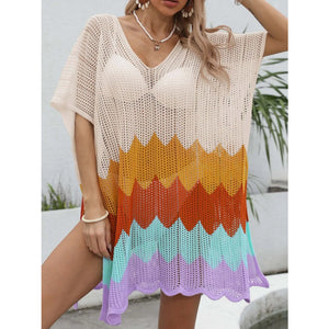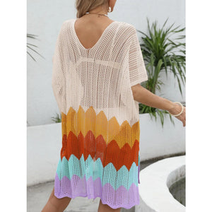Openwork V-Neck Half Sleeve Cover-Up