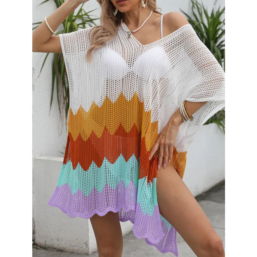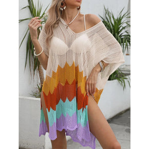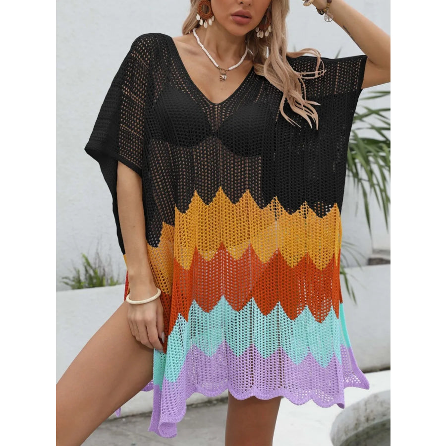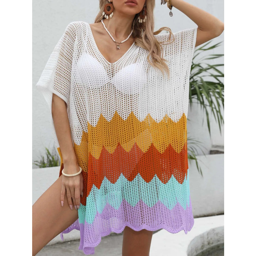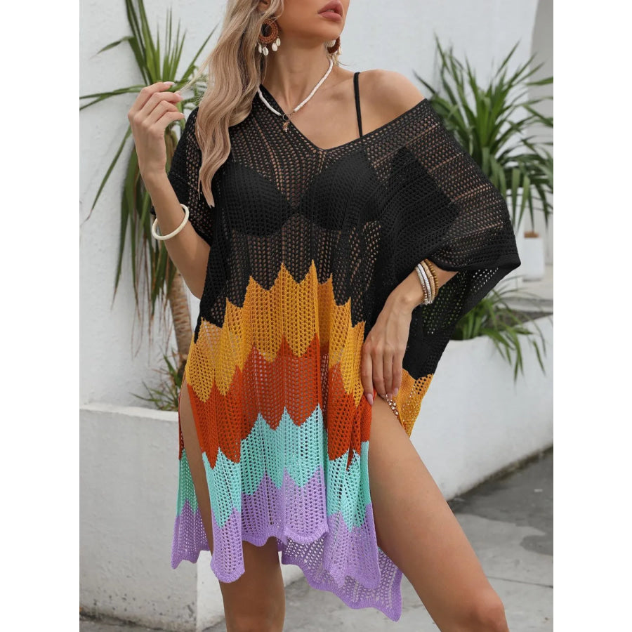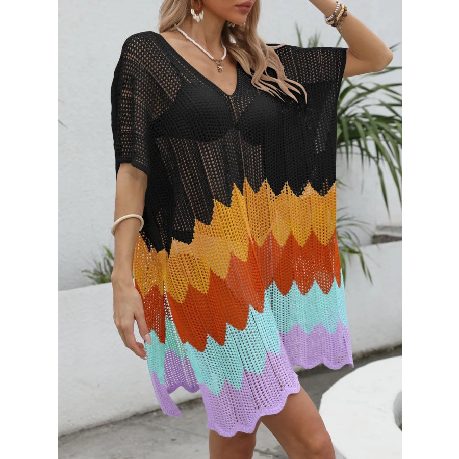 Openwork V-Neck Half Sleeve Cover-Up