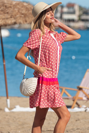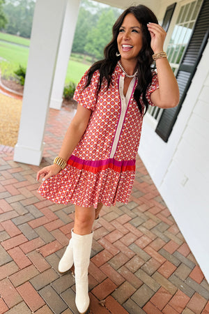 • Get ready to bloom in style with this geometric print dress.