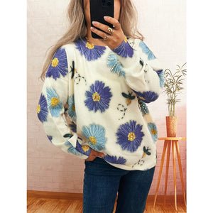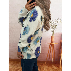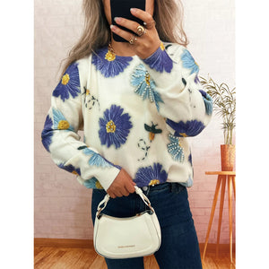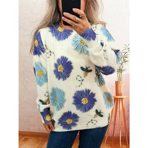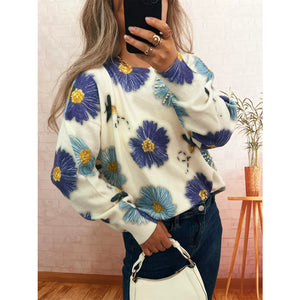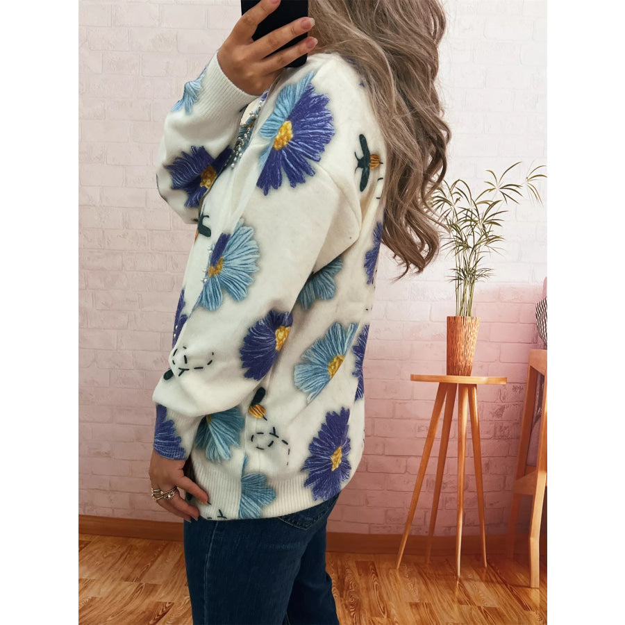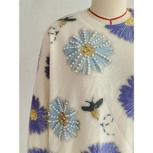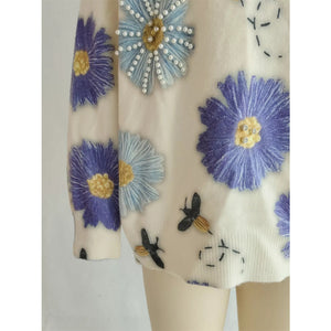 Pearl Detail Flower Round Neck Sweater