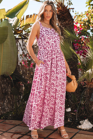 Pink Floral Cutout Back Empire Waist Sleeveless Maxi Dress