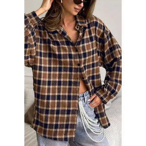 Plaid Button Up Drop Shoulder Shacket