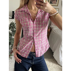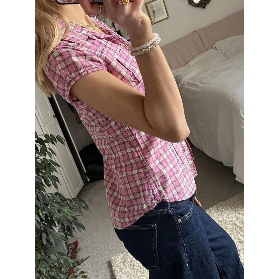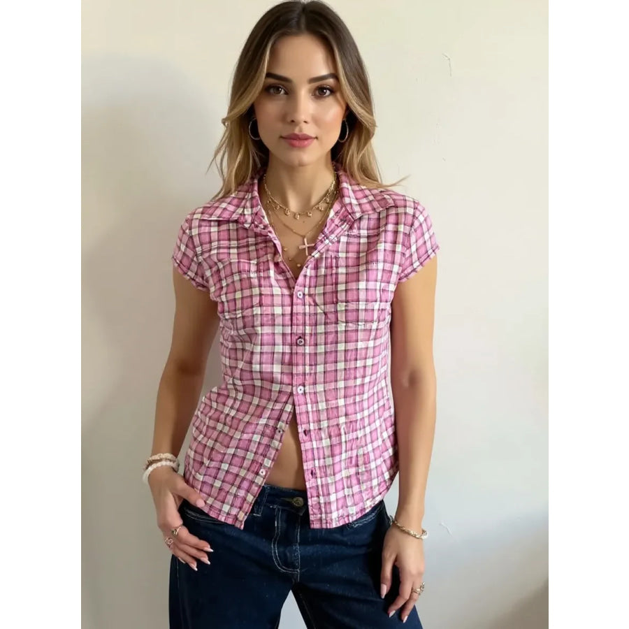 Plaid Cap Sleeve Button-Up Shirt