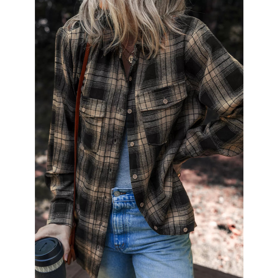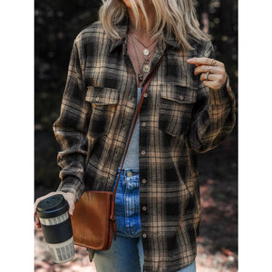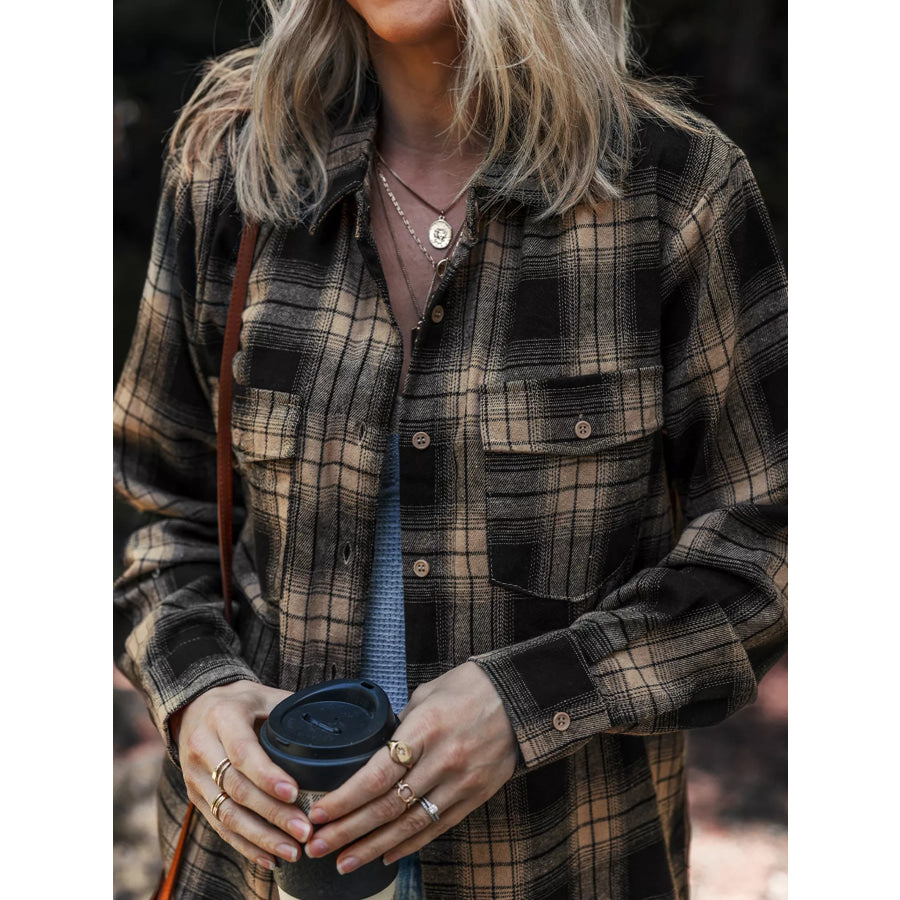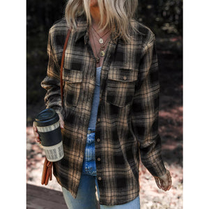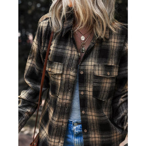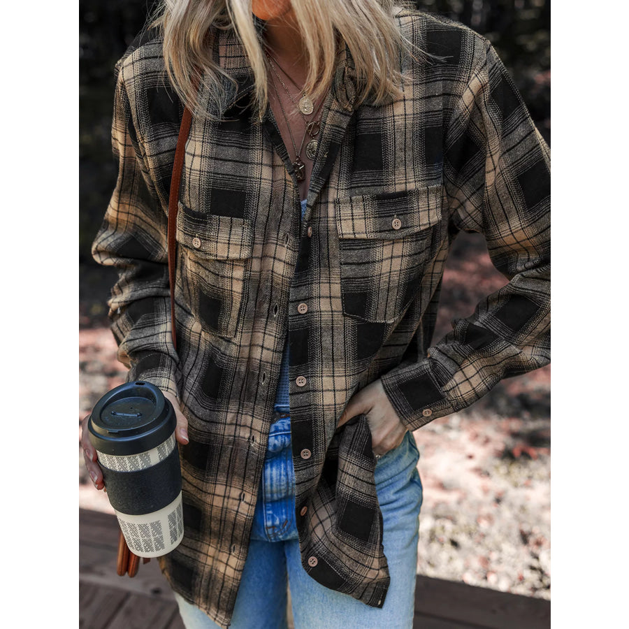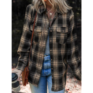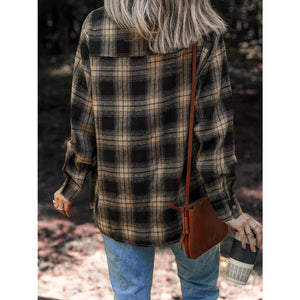 Plaid Double Flap Pocket Brushed Shacket