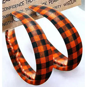 Plaid PU Leather Hoop Earrings