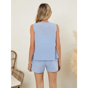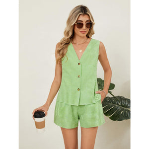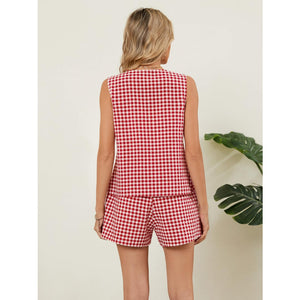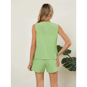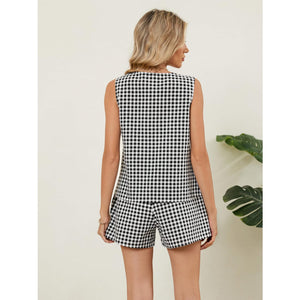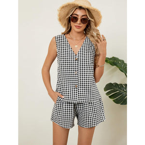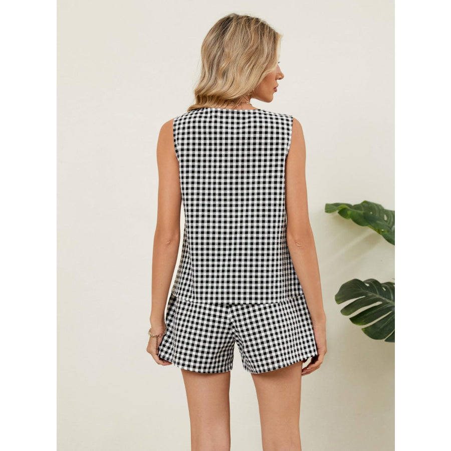 Plaid V-Neck Sleeveless Top and Shorts Set