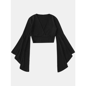 Plunge Flare Sleeve Cropped Top
