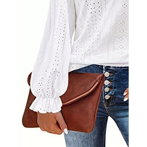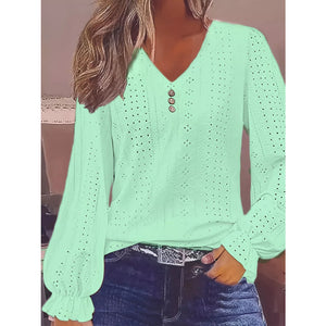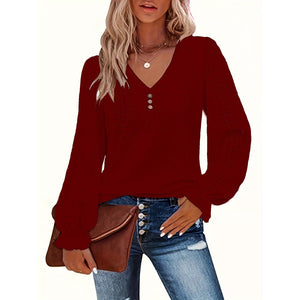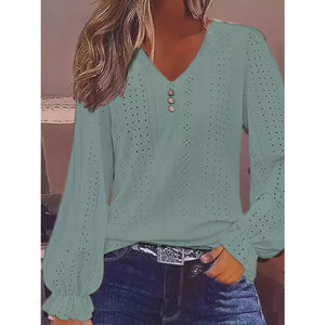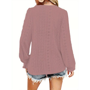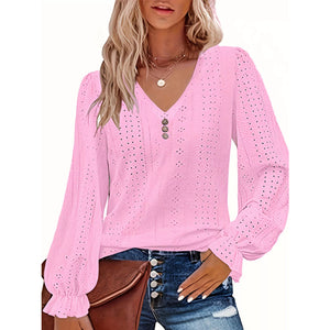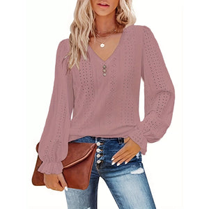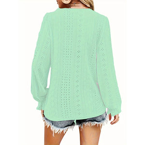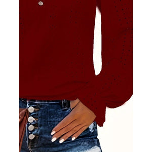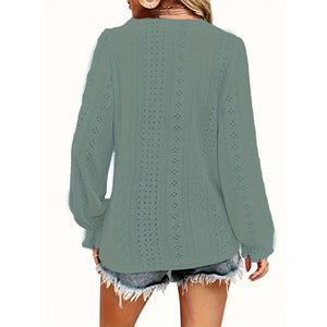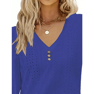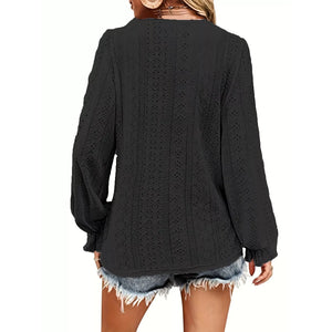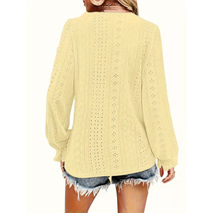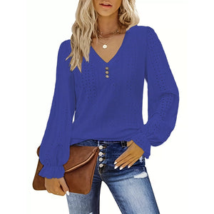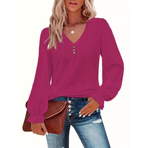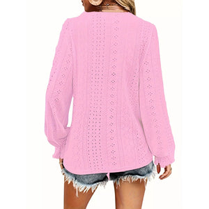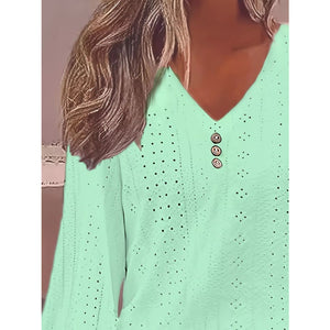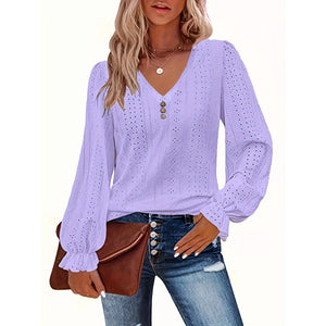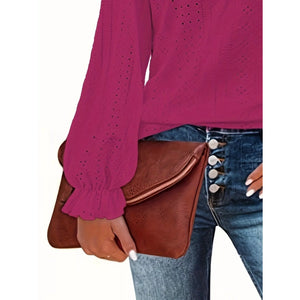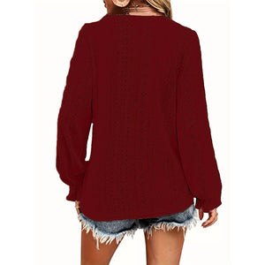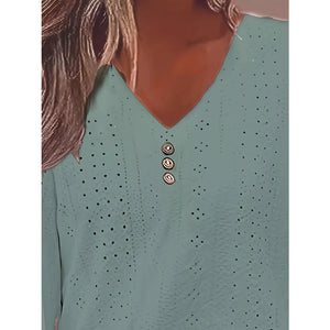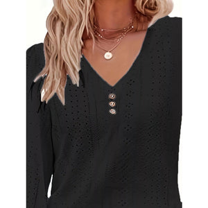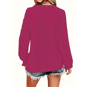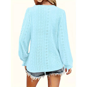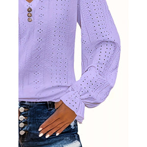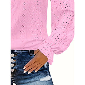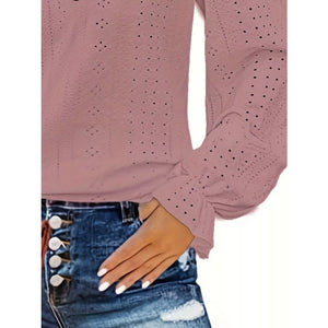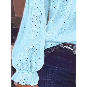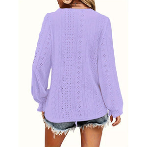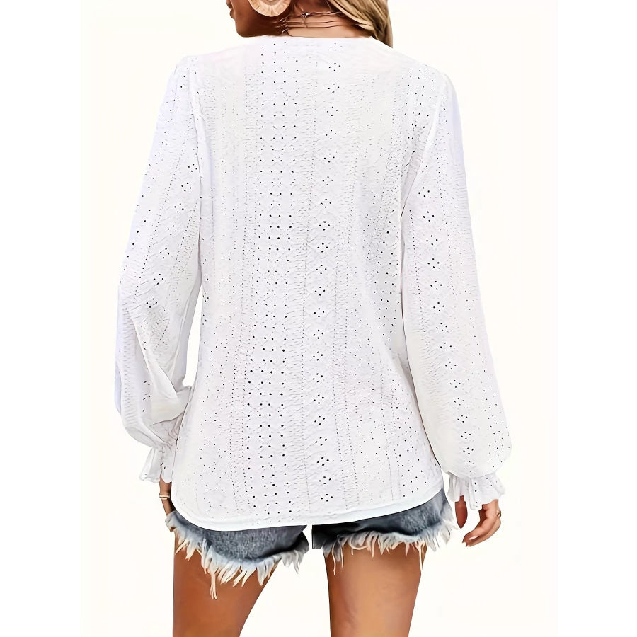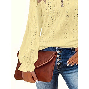 Plus Size Eyelet V-Neck Flounce Sleeve Blouse