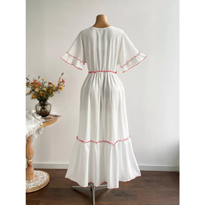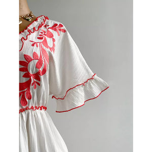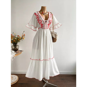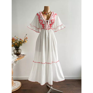 Plus Size Front Tie Maxi Dress with Floral Embroidered