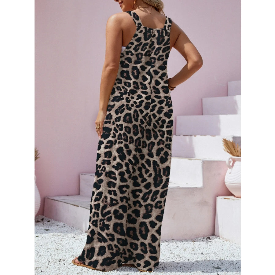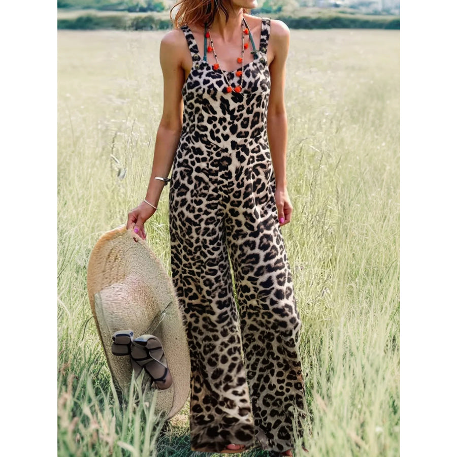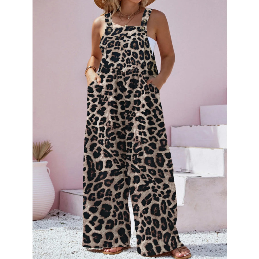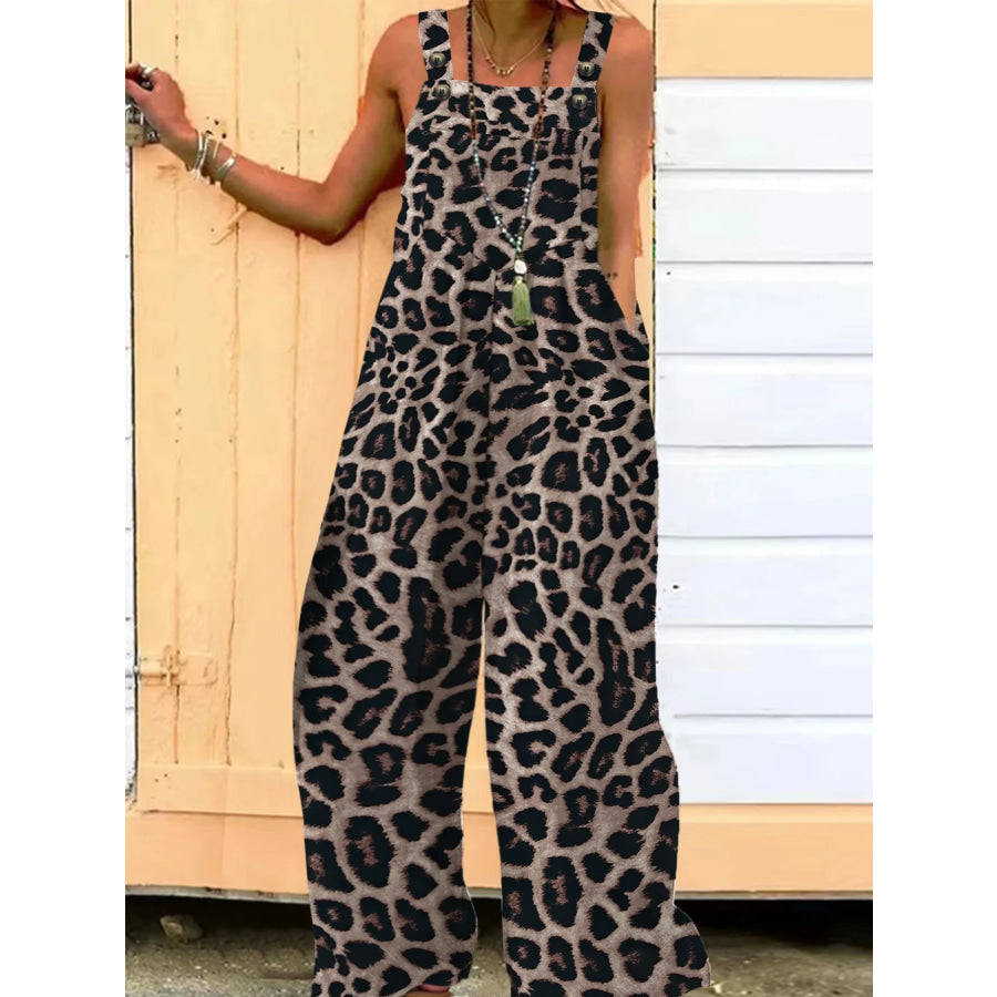Plus Size Leopard Print Wide Leg Casual Overalls