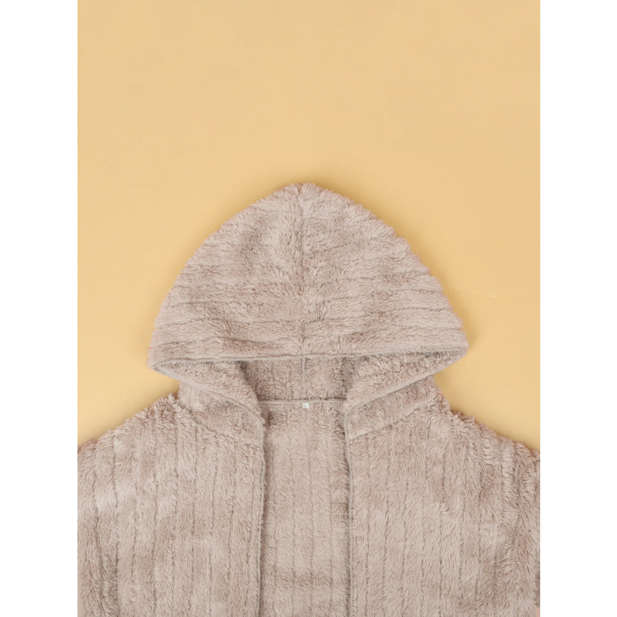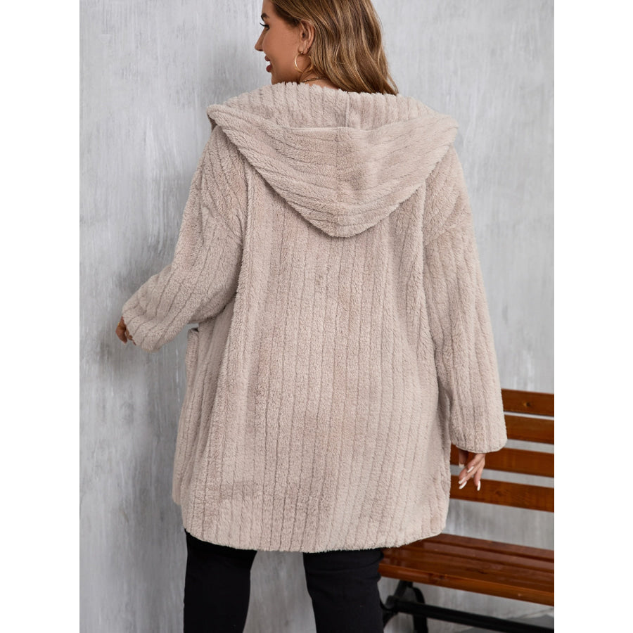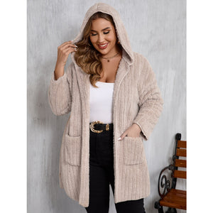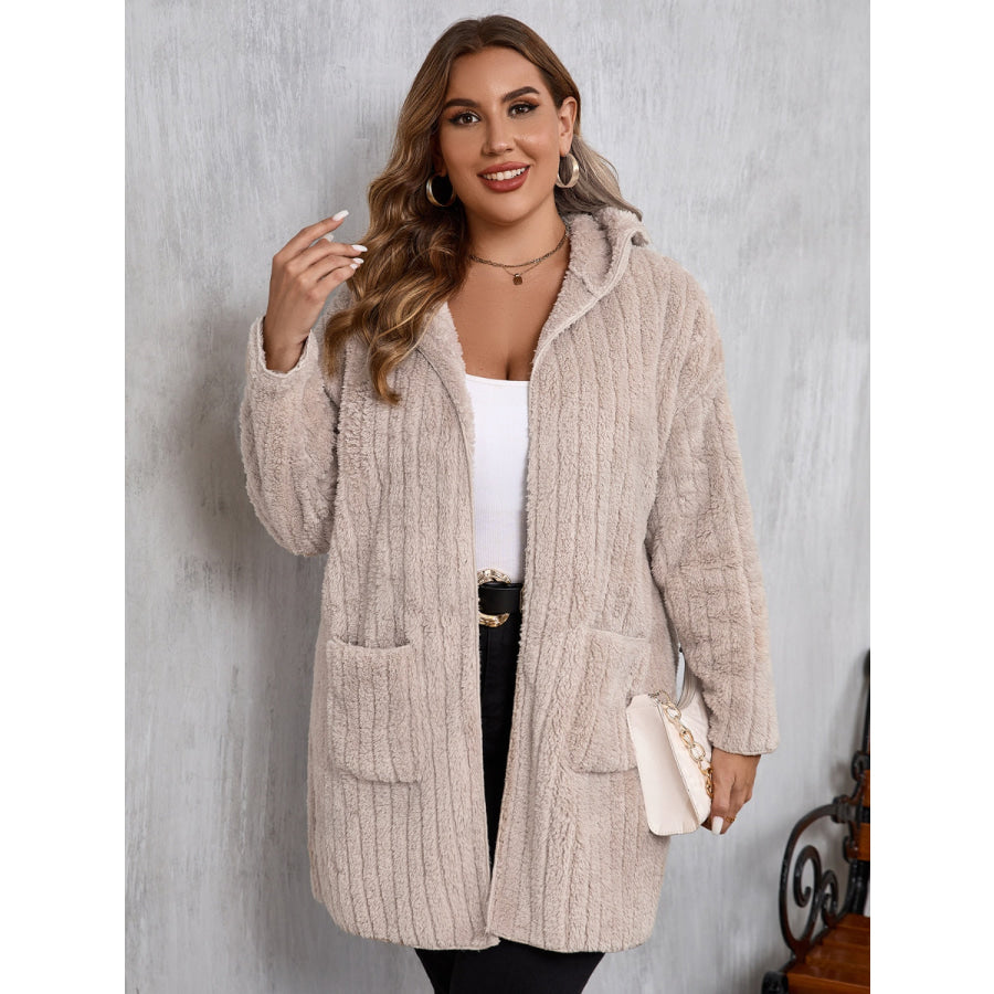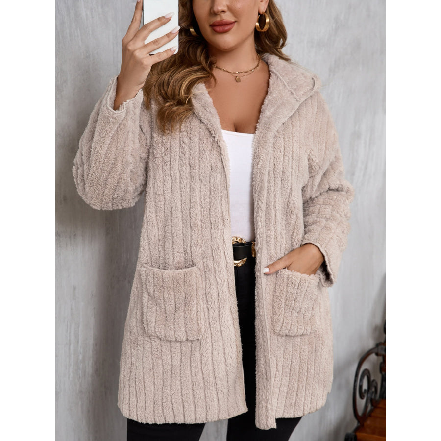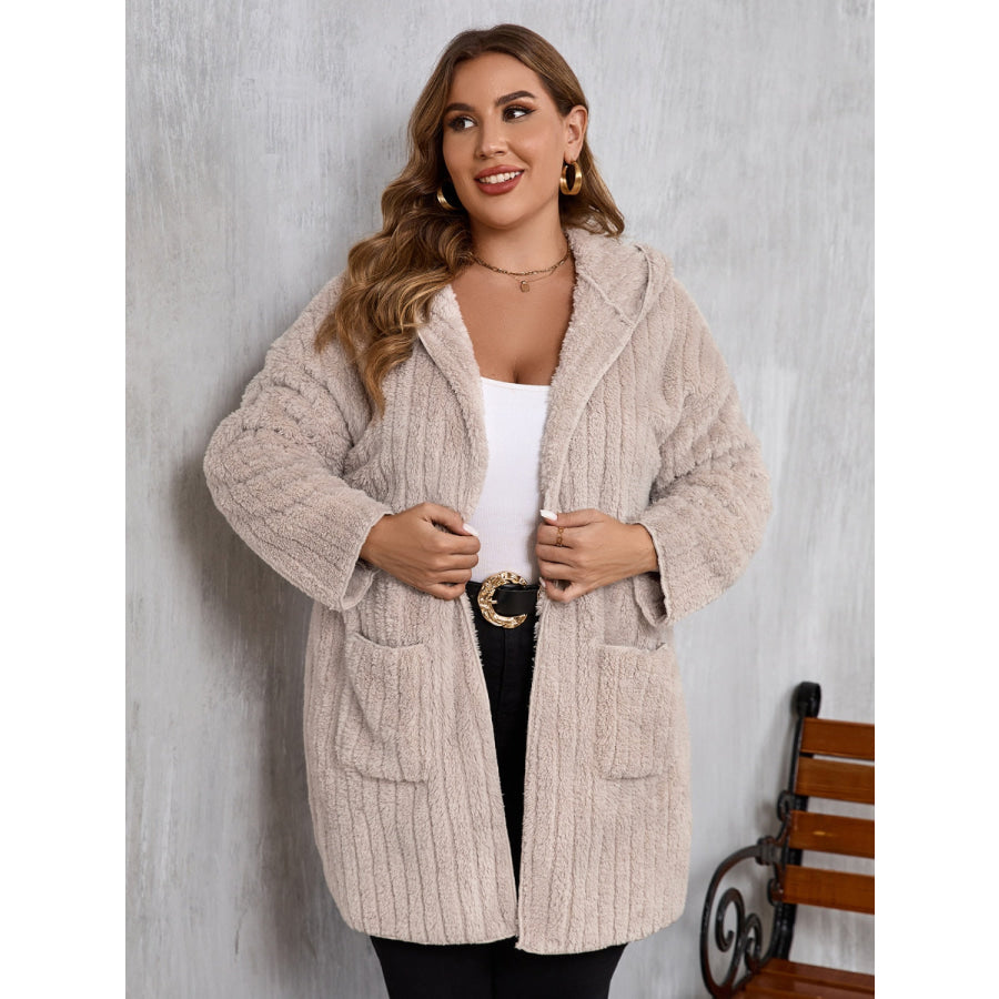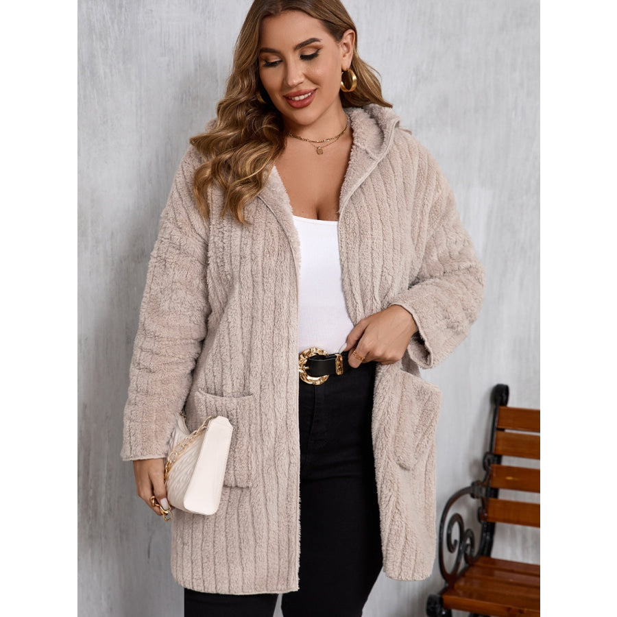 Plus Size Open Front Long Sleeve Hooded Fuzzy Jacket