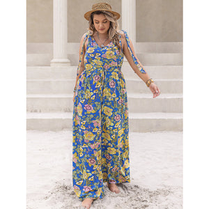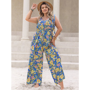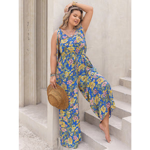 Plus Size Printed V-Neck Wide Leg Jumpsuit