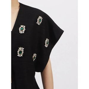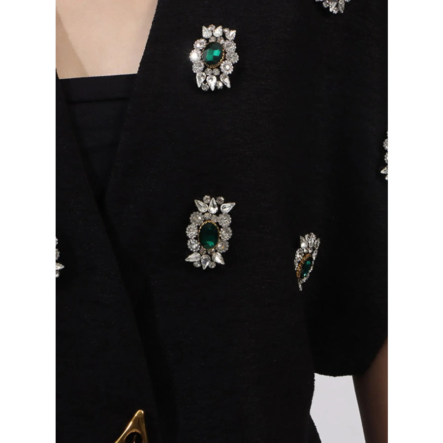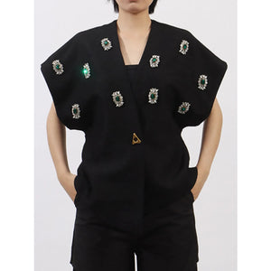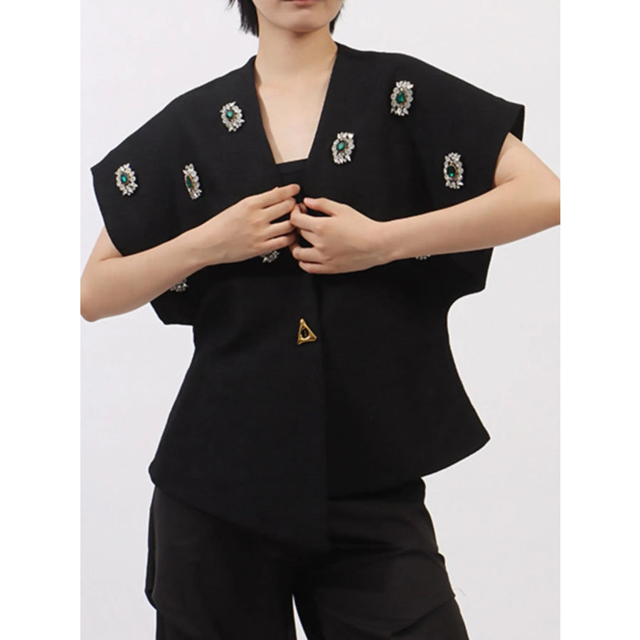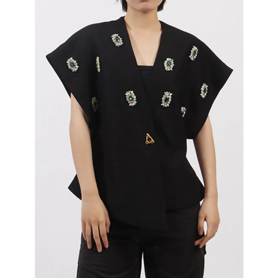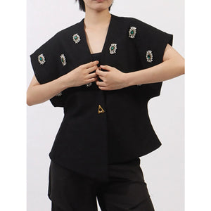 Plus Size Rhinestone Relaxed Fit Vest Coat