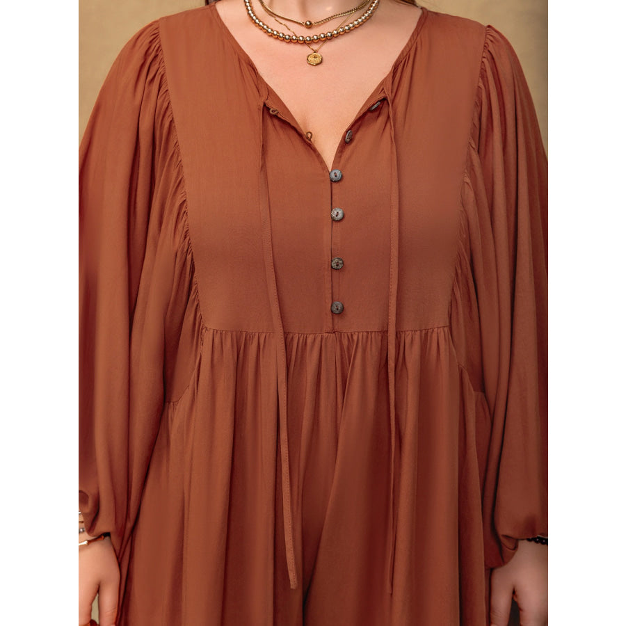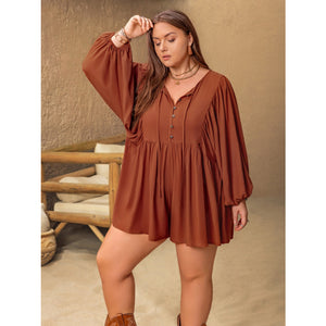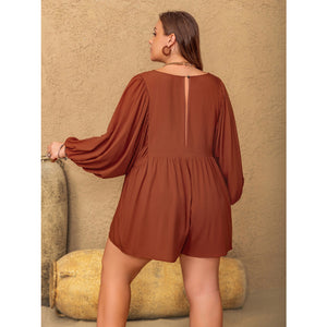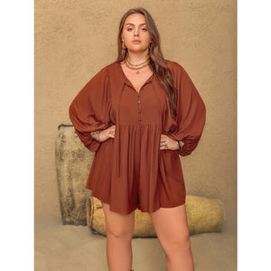 Plus Size Ruched Tie Neck Balloon Sleeve Romper