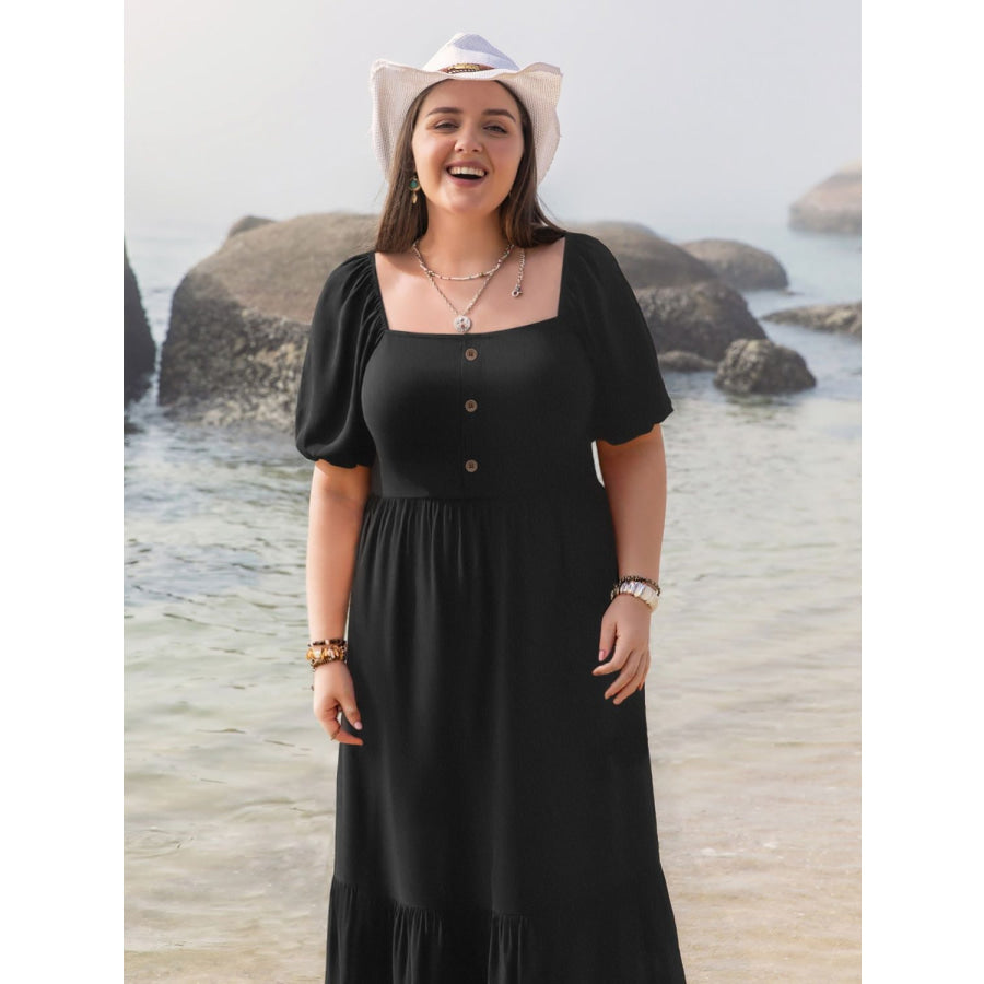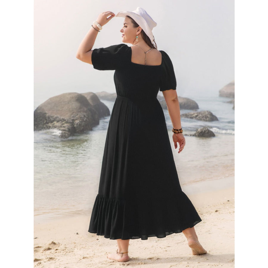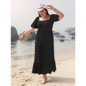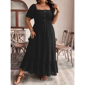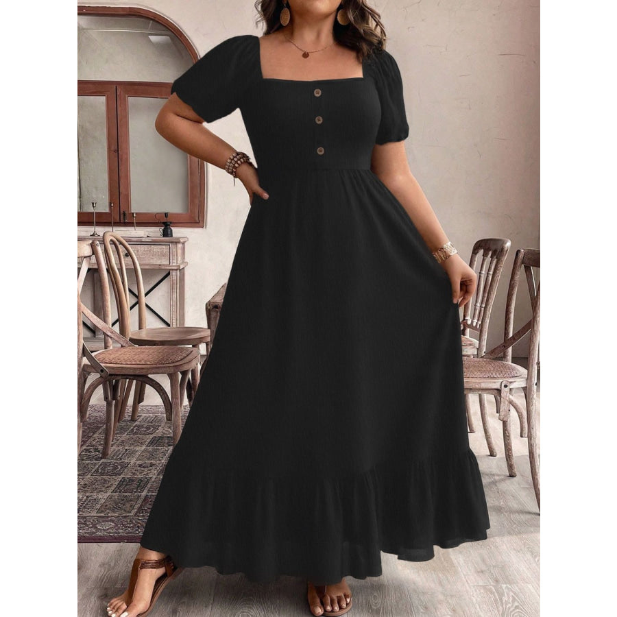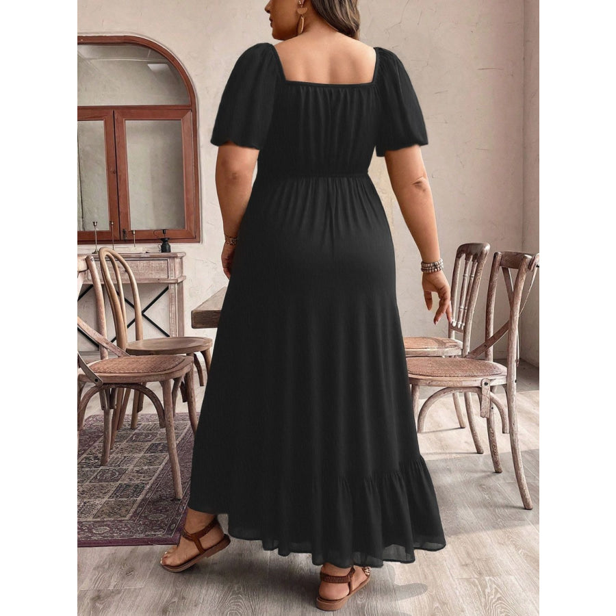 Plus Size Ruffled Hem Square Neck Short Sleeve Dress